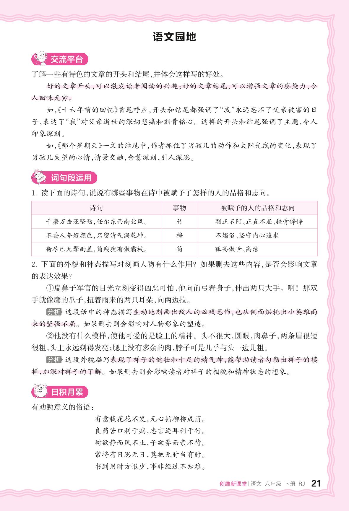 2024春下册六年级语文人教版 助学手册 第四单元——语文园地
