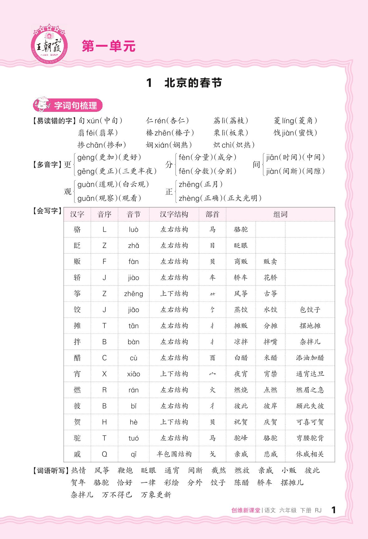 2024春下册六年级语文人教版 助学手册 第一单元——1. 北京的春节