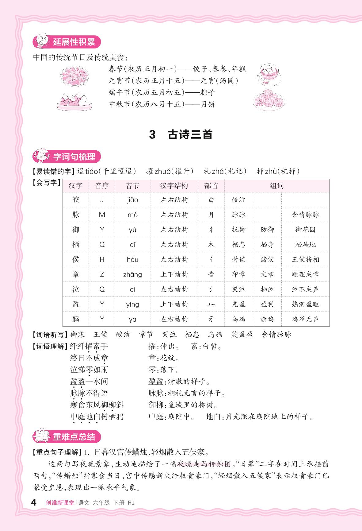 2024春下册六年级语文人教版 助学手册 第一单元——3. 古诗三首