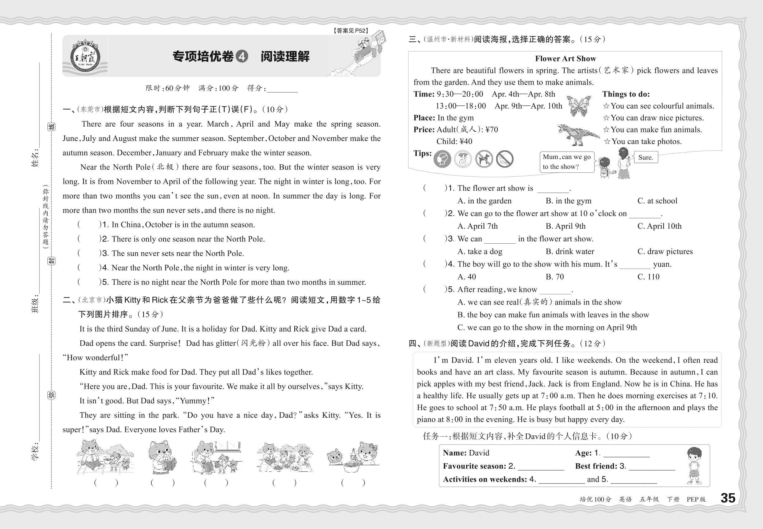 2024春下册五年级英语人教PEP版 期末专项卷PY版·阅读理解【4】