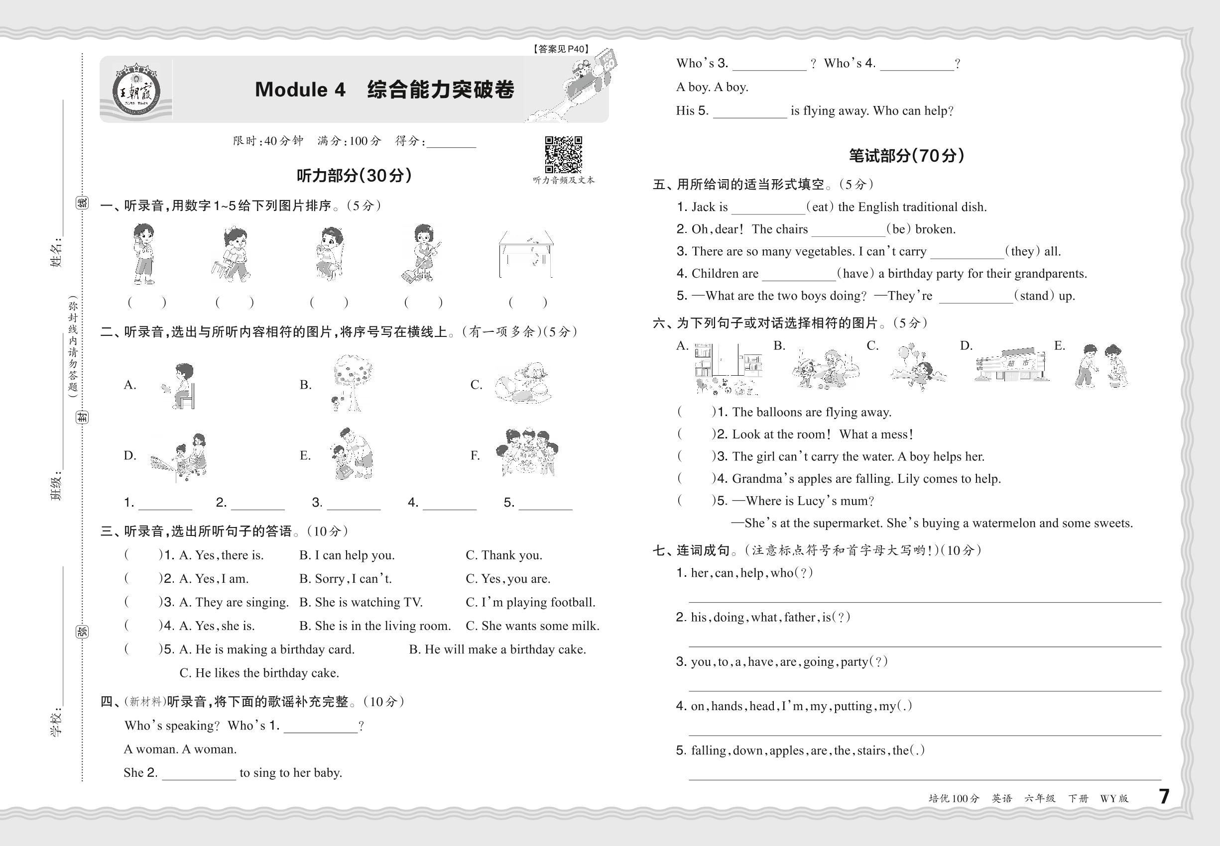 2024春下册六年级英语外研版 Moudle 4 综合能力突破卷