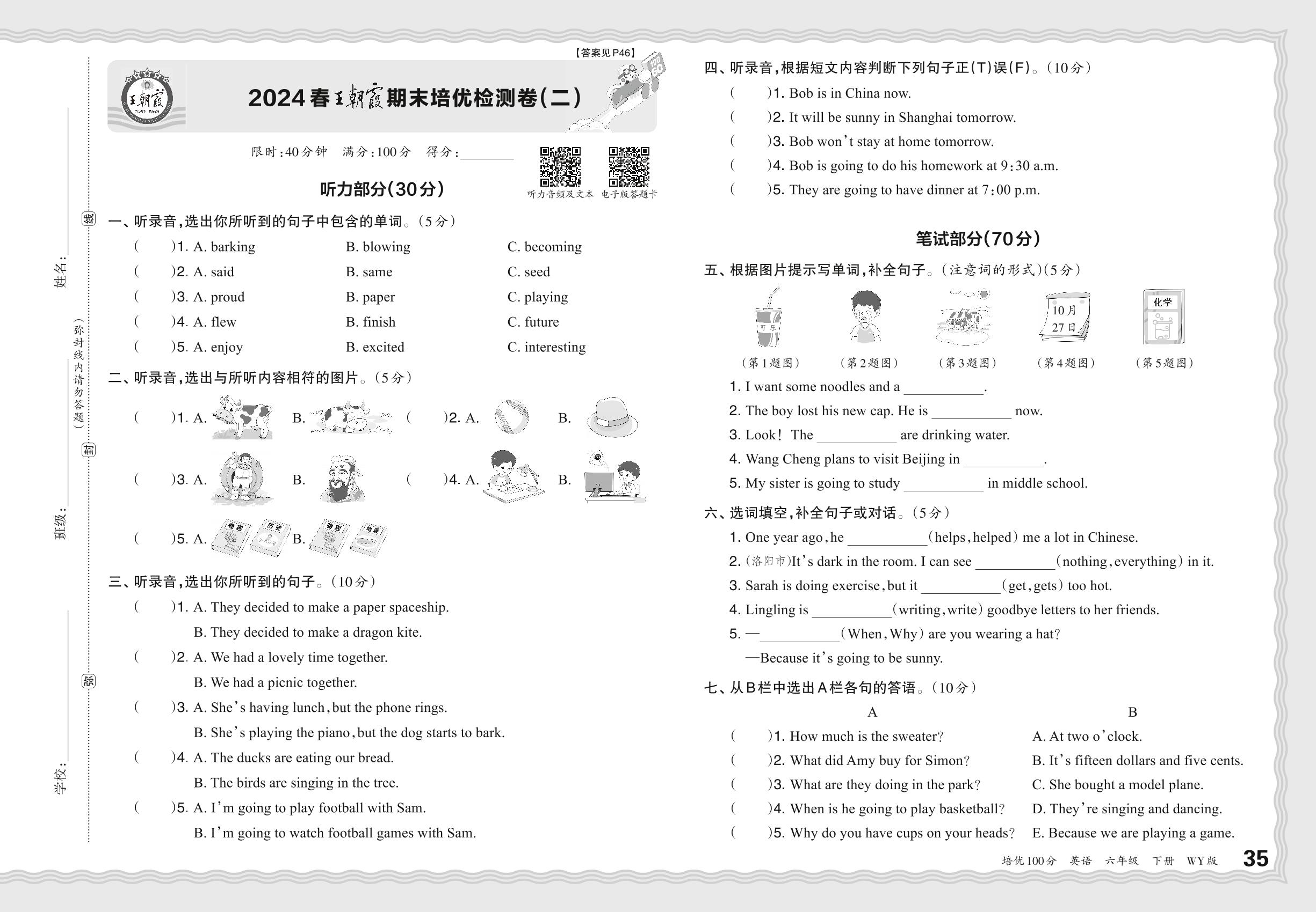 2024春下册六年级英语外研版 王朝霞期末培优检测卷(二)