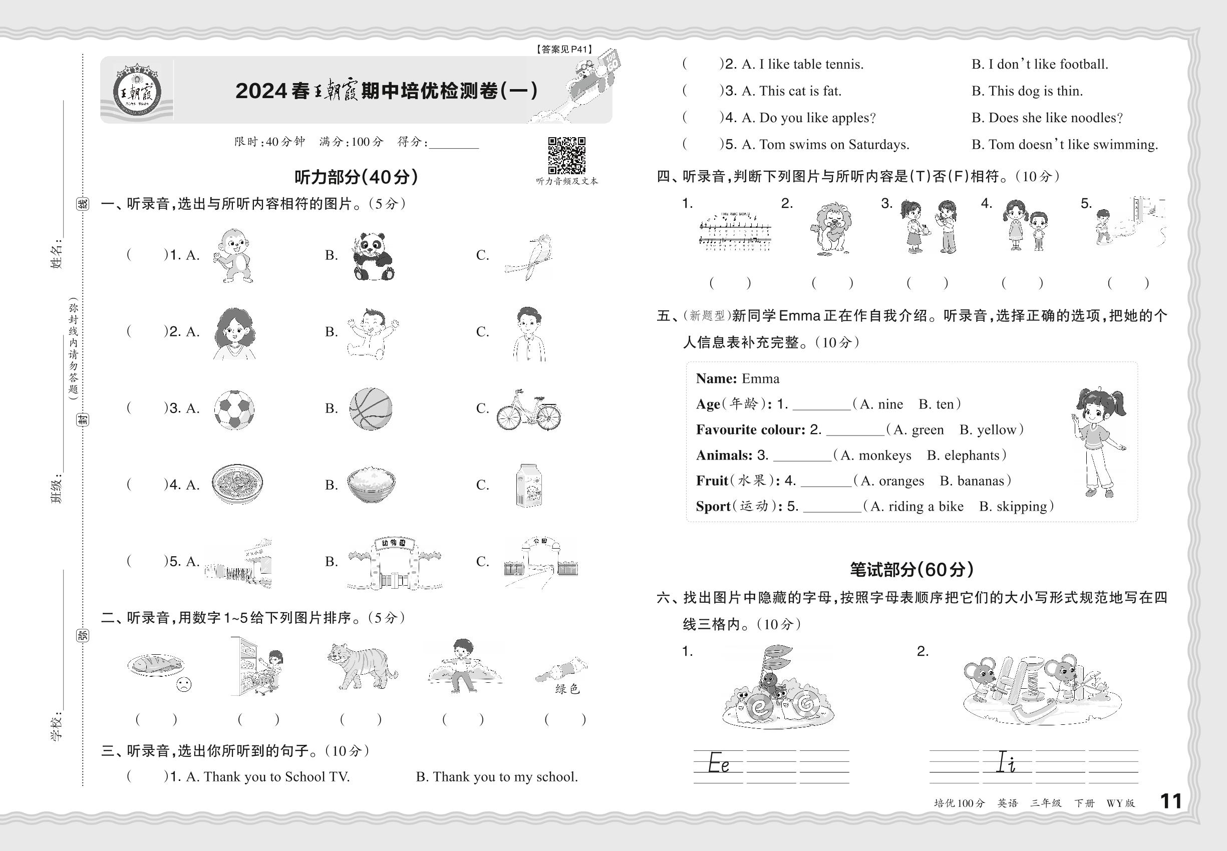 2024春下册三年级英语外研版 王朝霞期中培优检测卷(一)