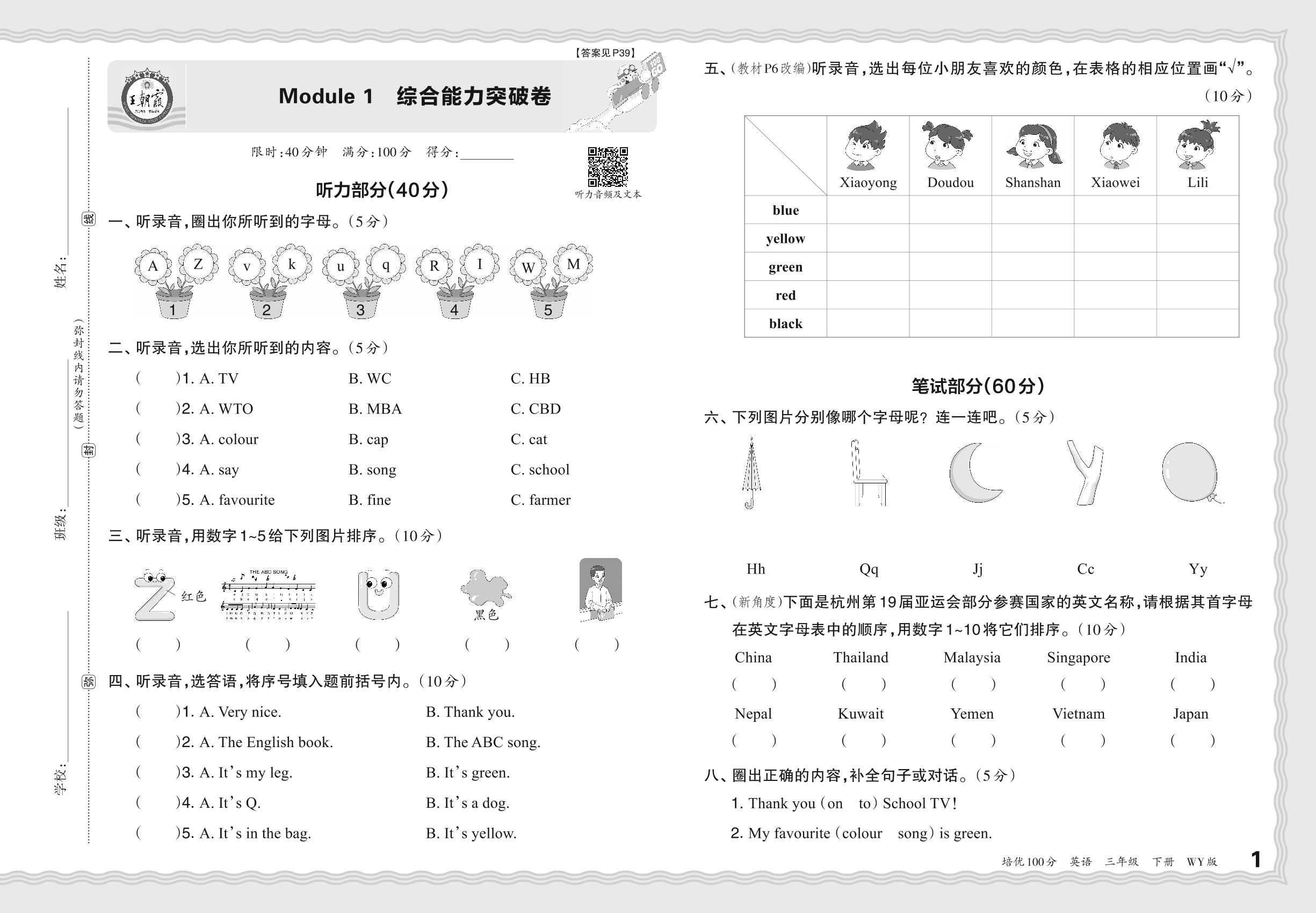 2024春下册三年级英语外研版 Moudle 1 综合能力突破卷