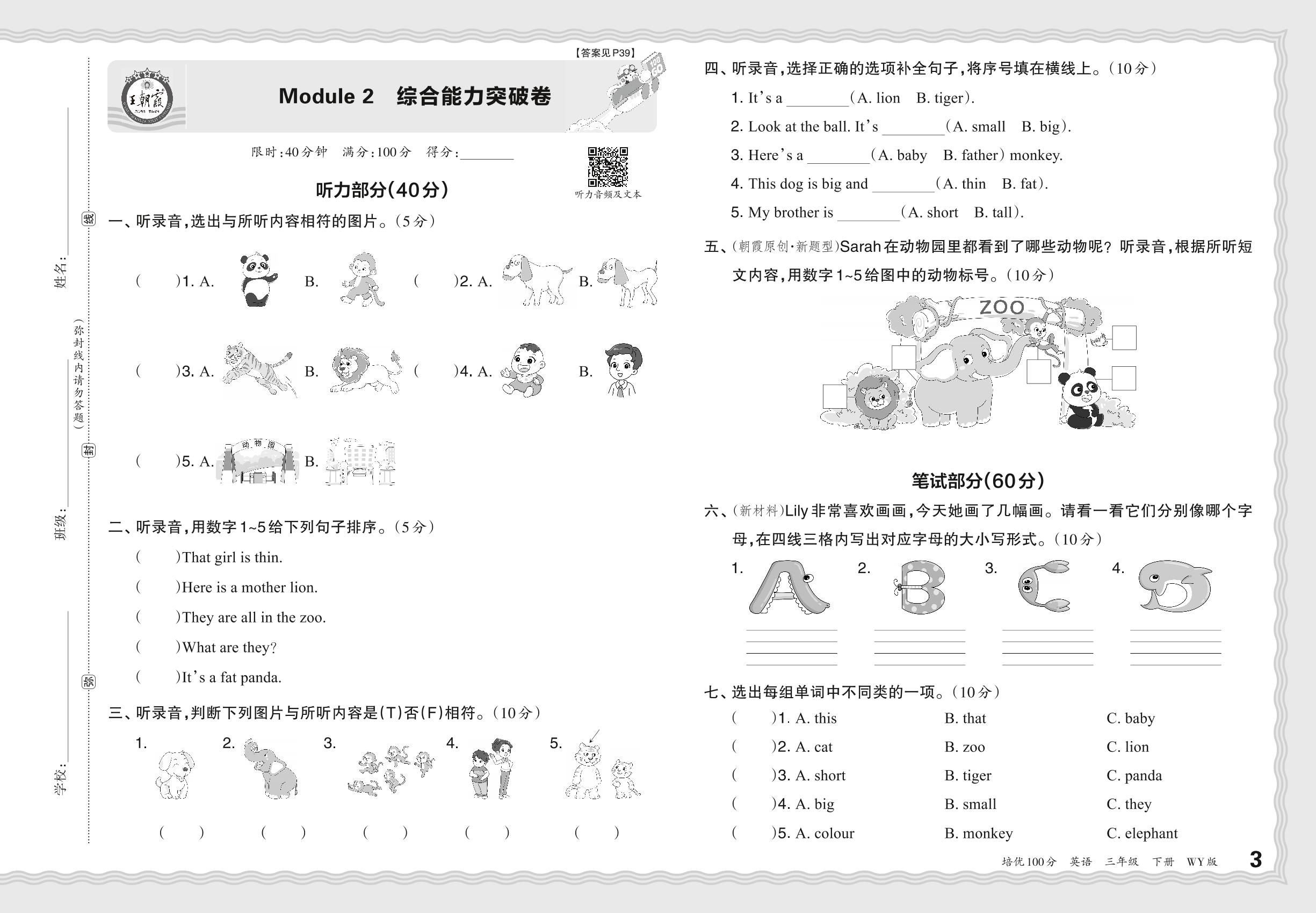 2024春下册三年级英语外研版 Moudle 2 综合能力突破卷