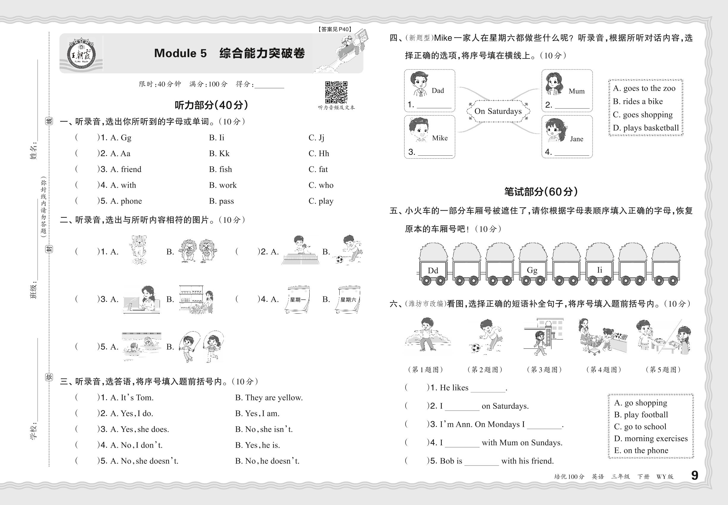 2024春下册三年级英语外研版 Moudle 5 综合能力突破卷