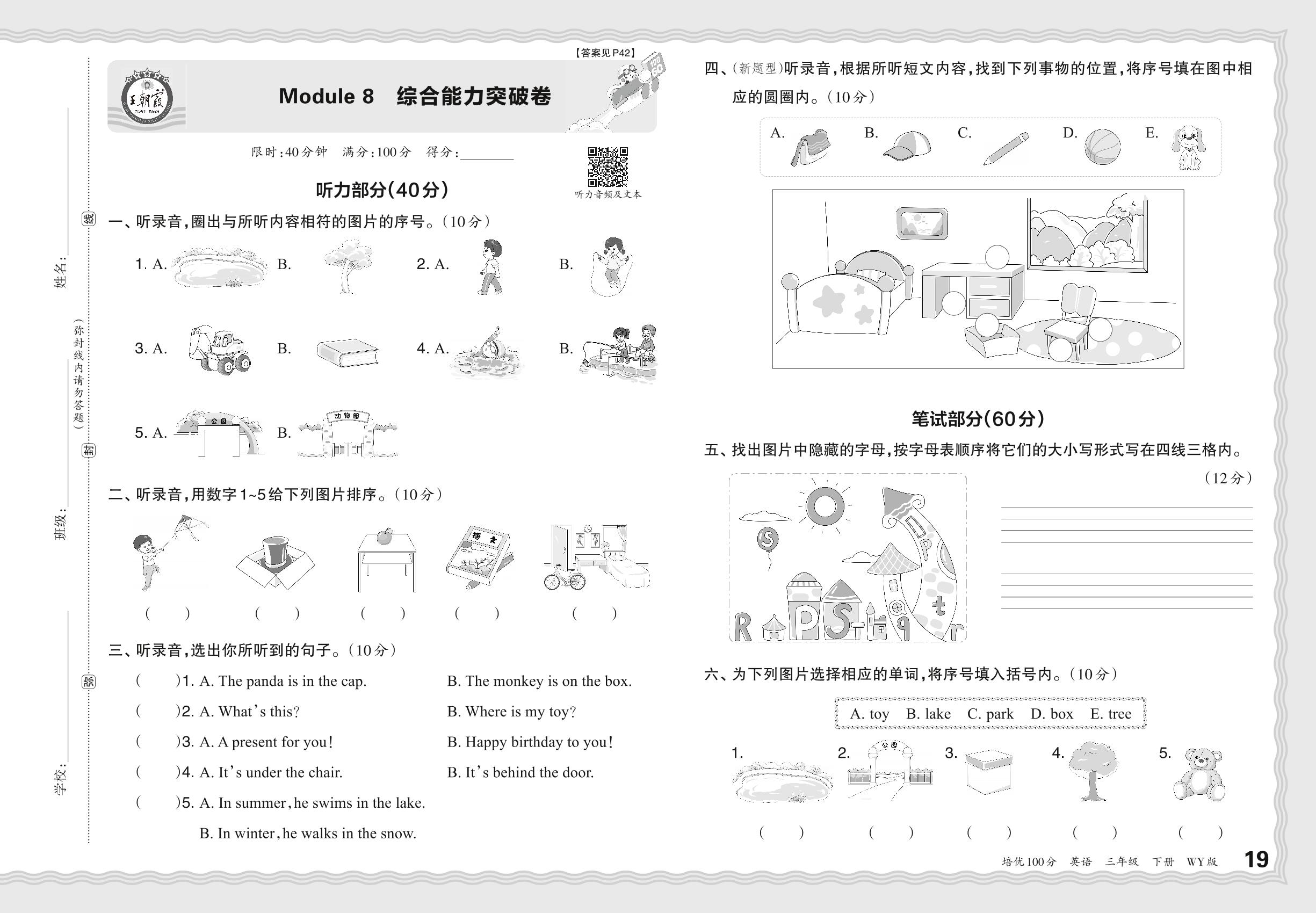 2024春下册三年级英语外研版 Moudle 8 综合能力突破卷