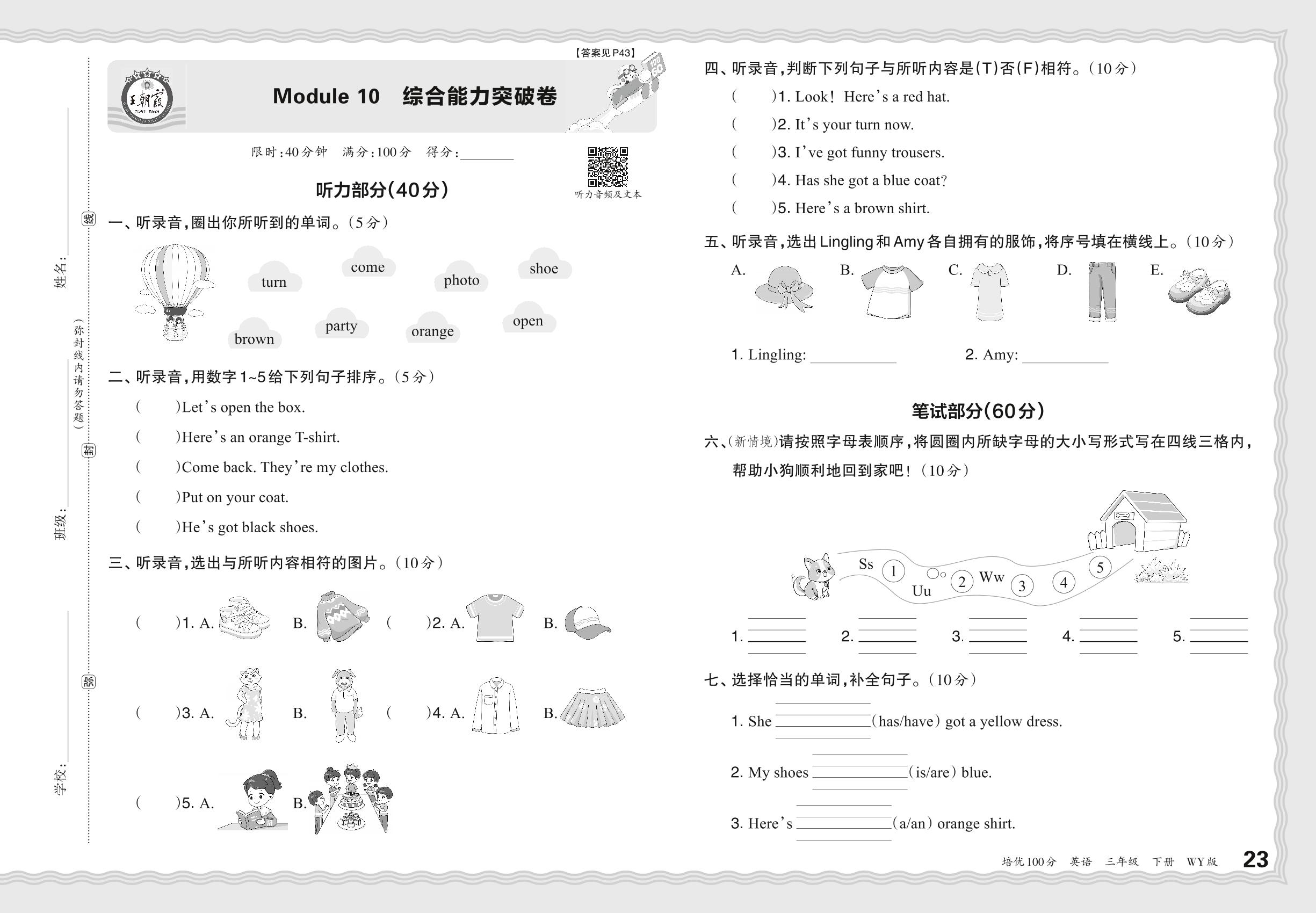2024春下册三年级英语外研版 Moudle 10 综合能力突破卷