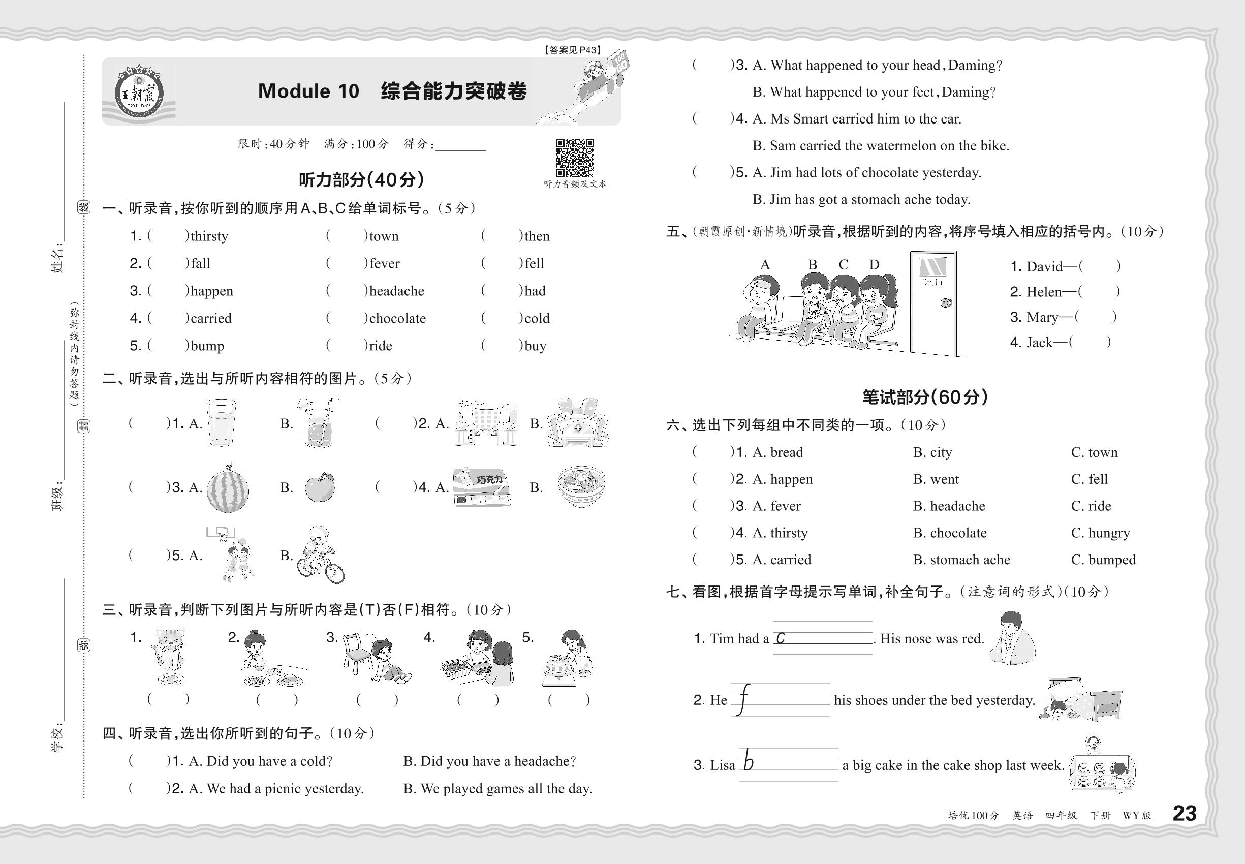 2024春下册四年级英语外研版 Moudle 10 综合能力突破卷