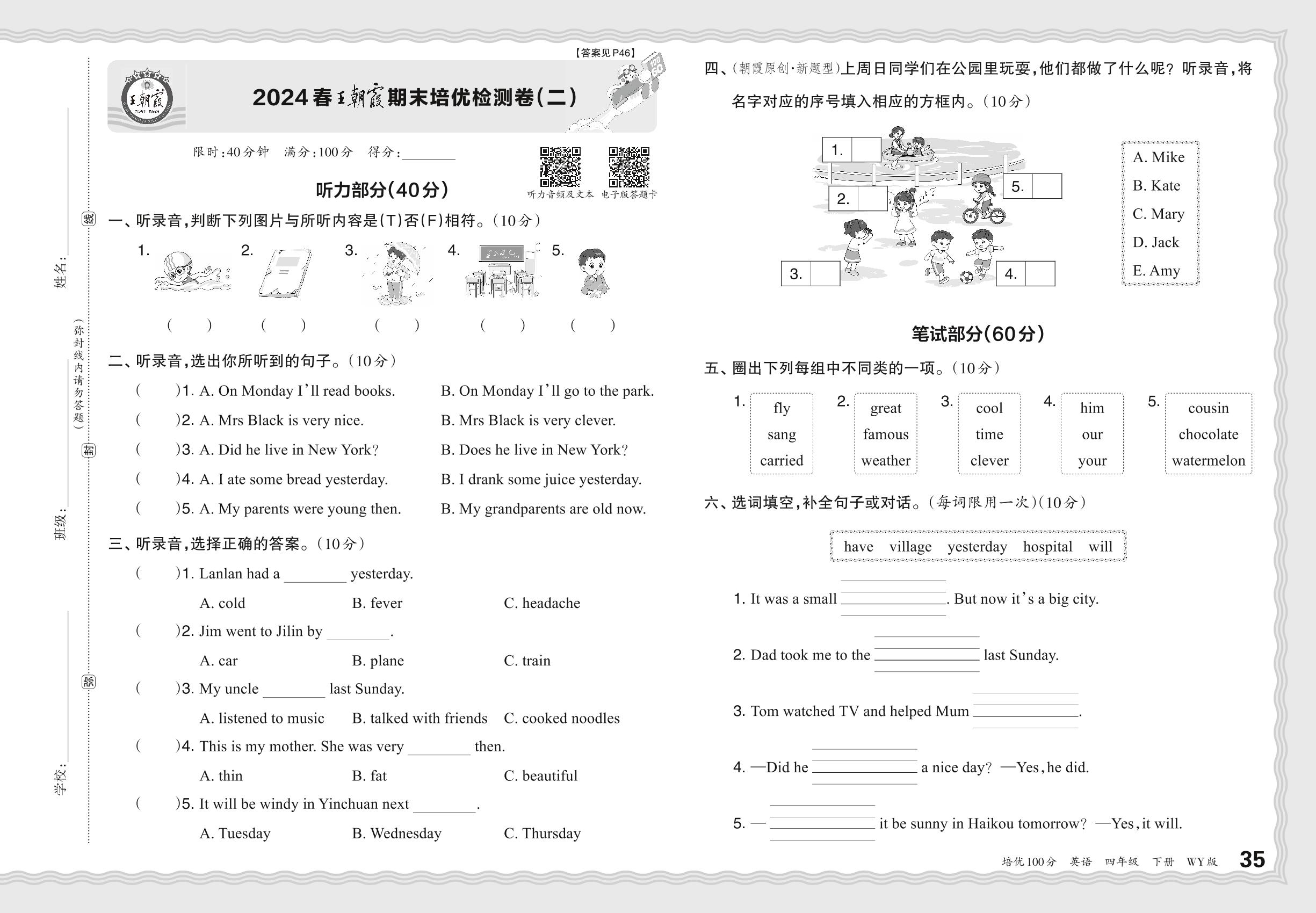 2024春下册四年级英语外研版 王朝霞期末培优检测卷(二)