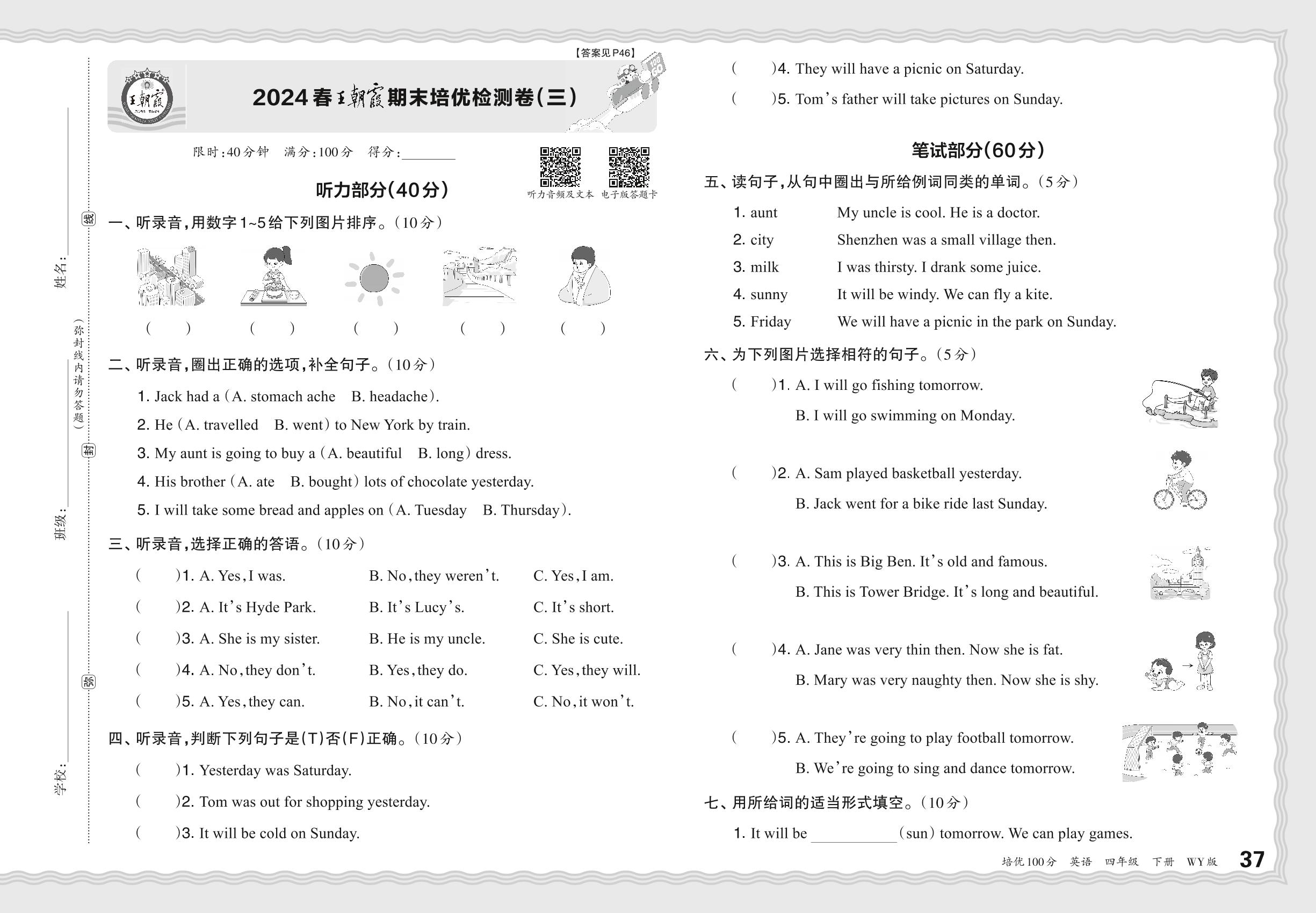 2024春下册四年级英语外研版 王朝霞期末培优检测卷(三)