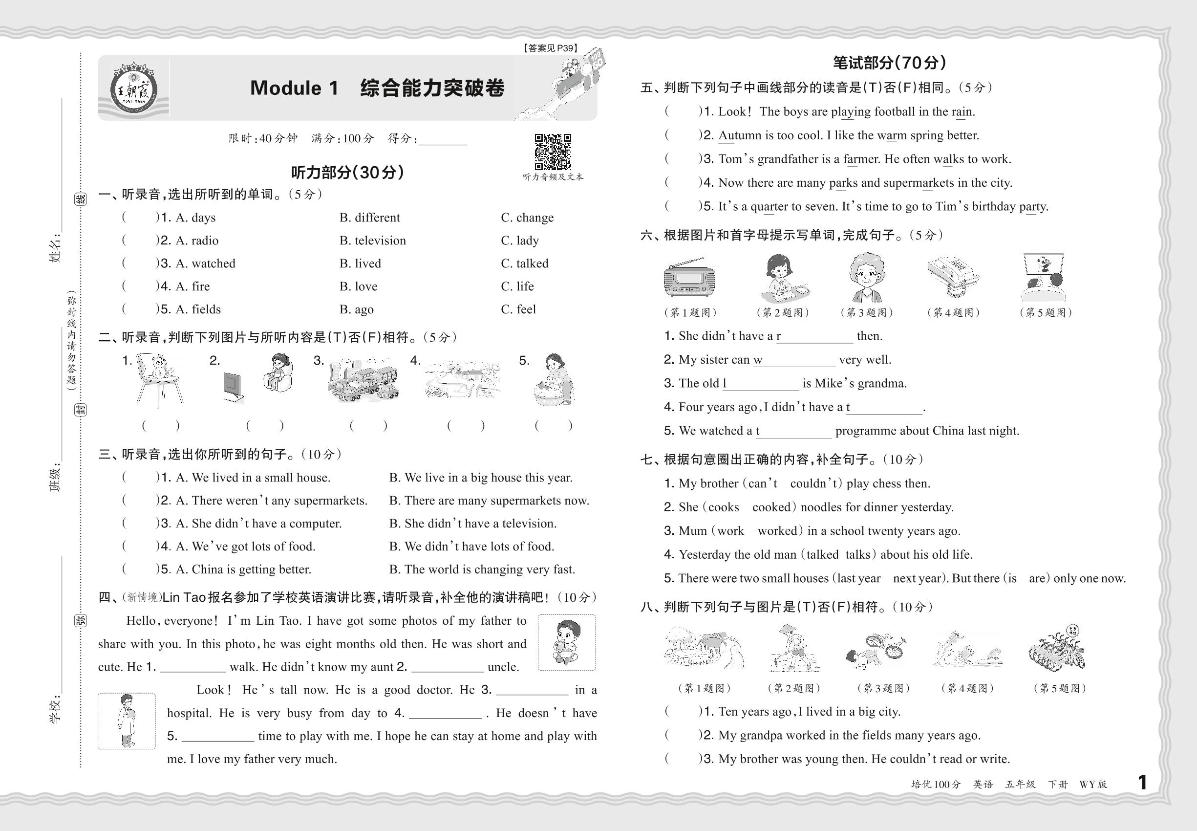 2024春下册五年级英语外研版 Moudle 1 综合能力突破卷