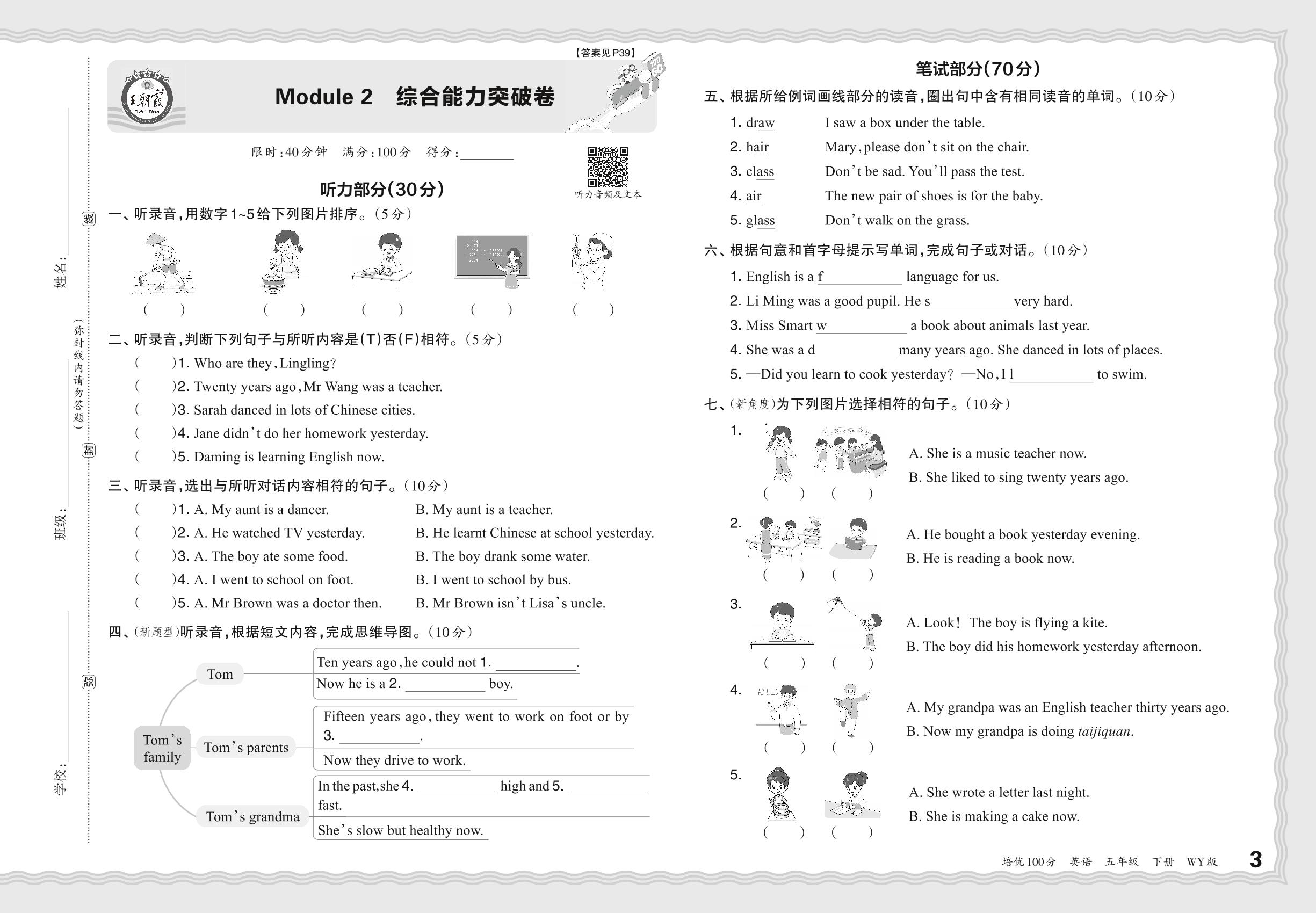 五年级英语外研版(三起始)下册单元卷