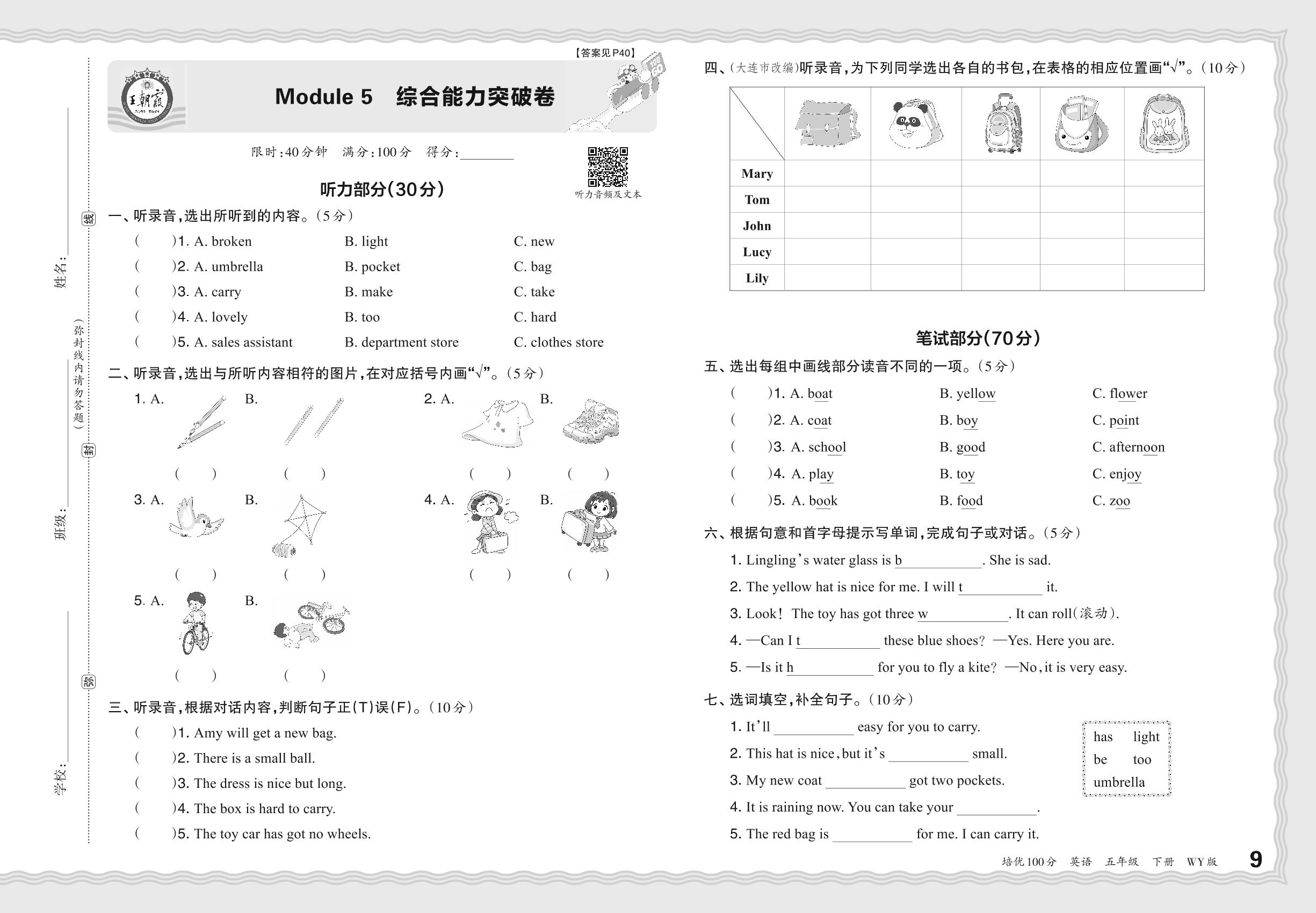 2024春下册五年级英语外研版 Moudle 5 综合能力突破卷