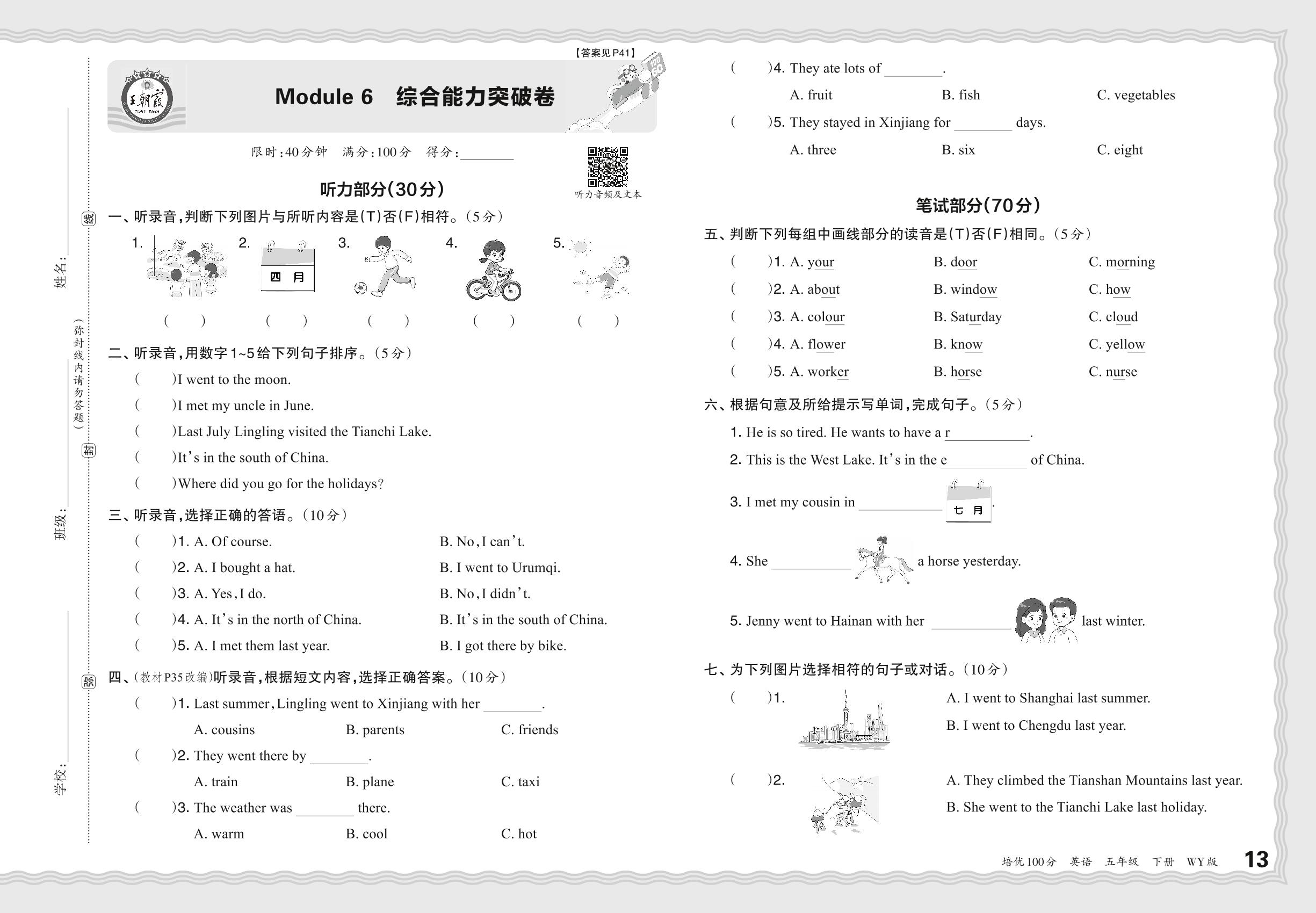 2024春下册五年级英语外研版 Moudle 6 综合能力突破卷
