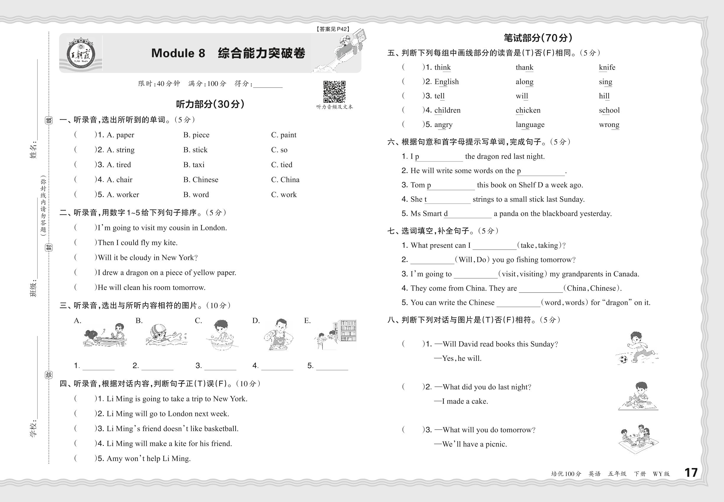 2024春下册五年级英语外研版 Moudle 8 综合能力突破卷