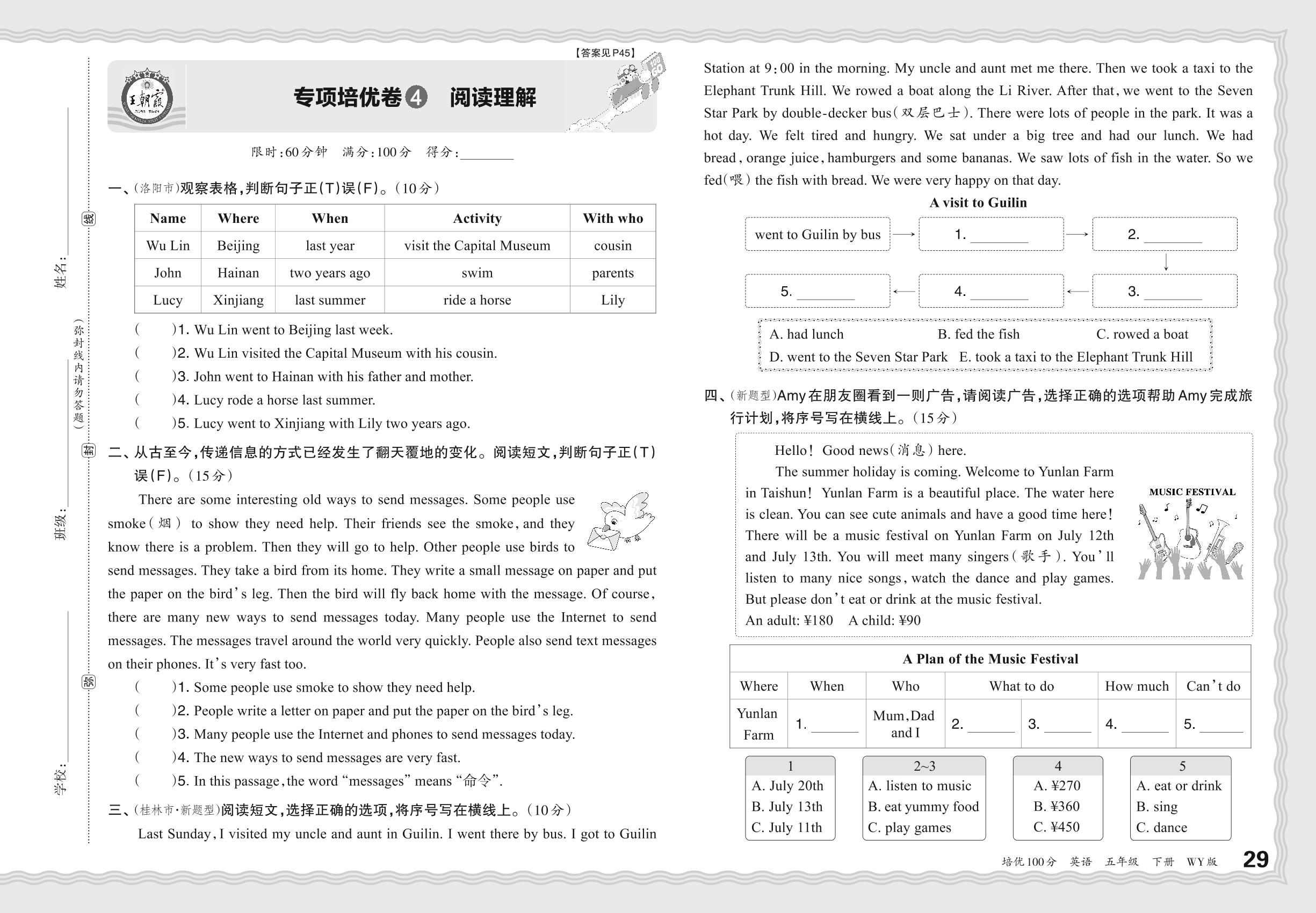2024春下册五年级英语外研版 期末专项卷PY版·阅读理解【4】