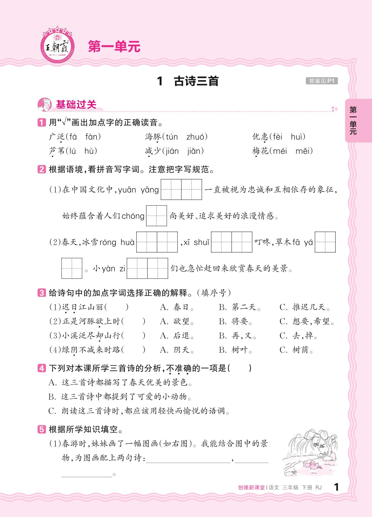 2024春下册三年级语文人教版 第一单元 可爱的生灵——1. 古诗三首