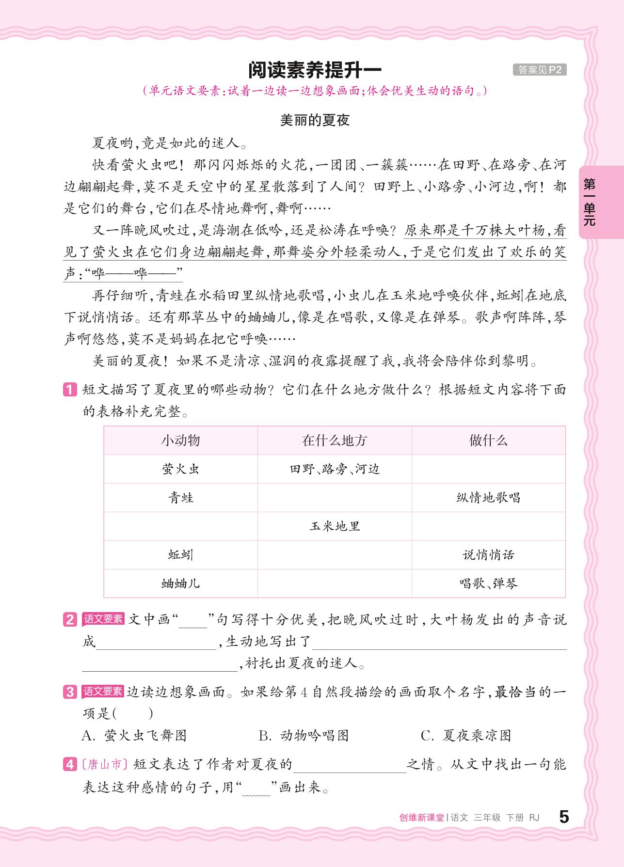2024春下册三年级语文人教版 第一单元 可爱的生灵——阅读素养提升一