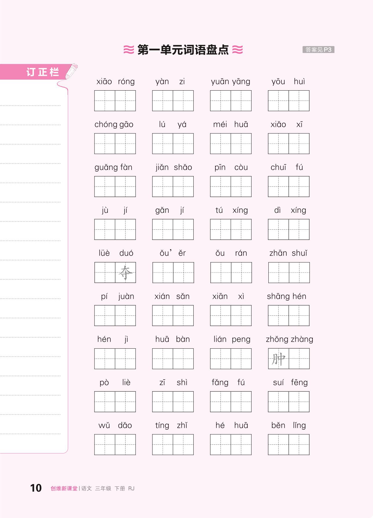 2024春下册三年级语文人教版 第一单元词语盘点