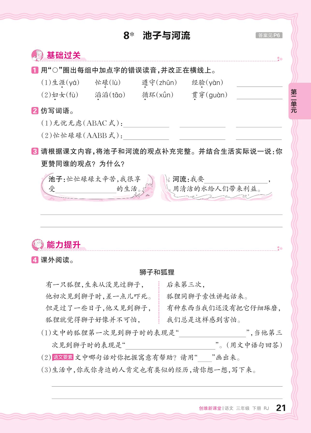 2024春下册三年级语文人教版 第二单元 寓言故事——8. 池子与河流