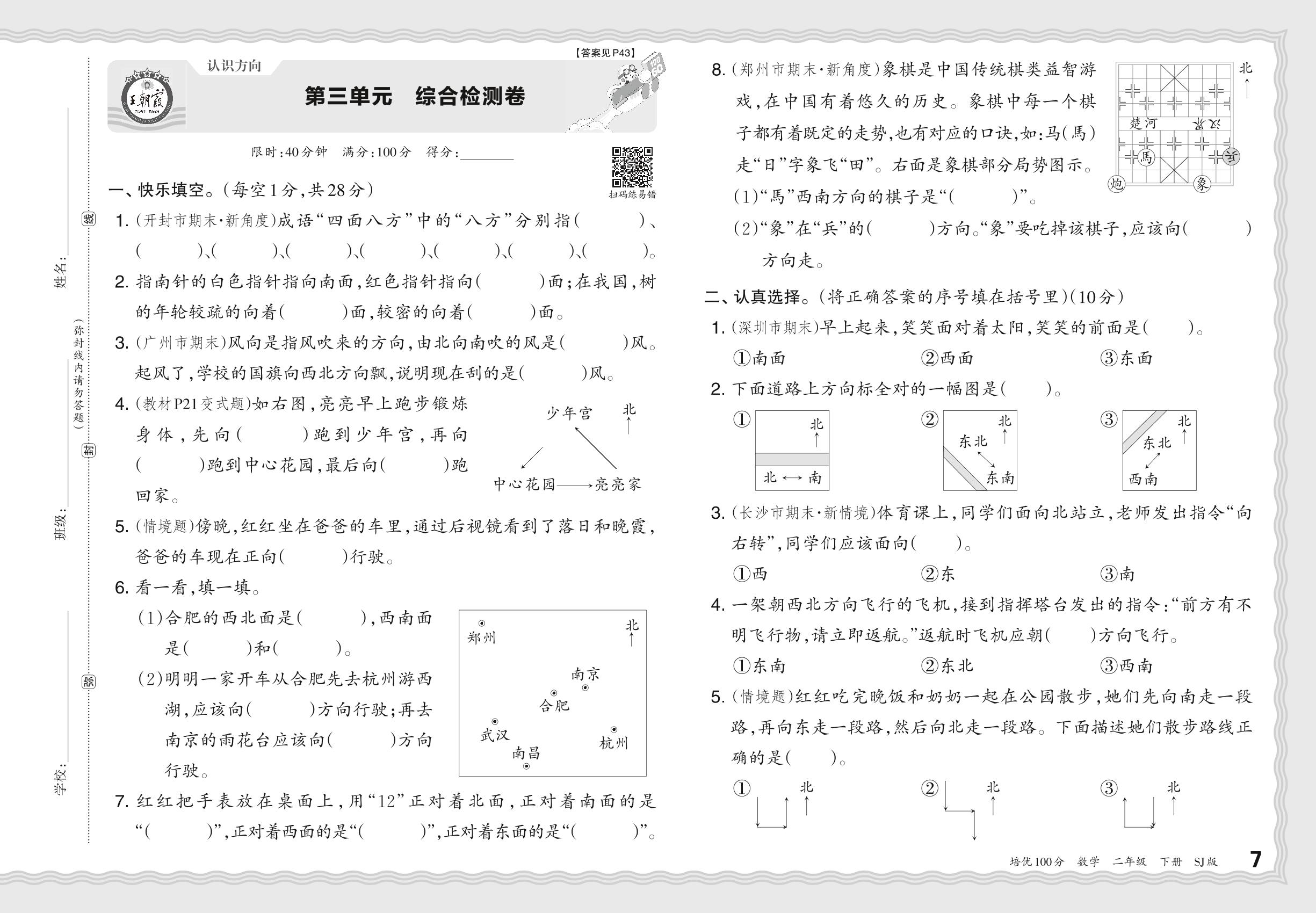 2024春下册二年级数学苏教版 第三单元 综合检测卷