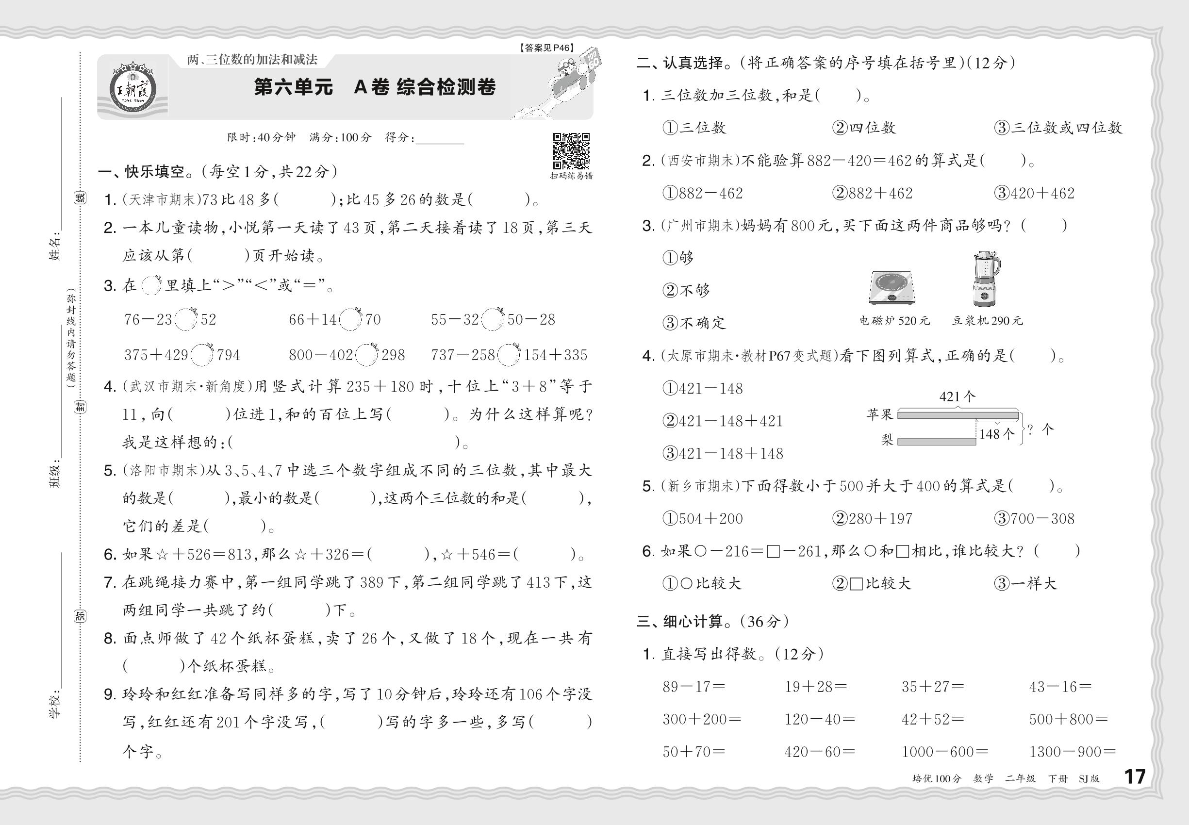 二年级数学苏教版下册单元卷