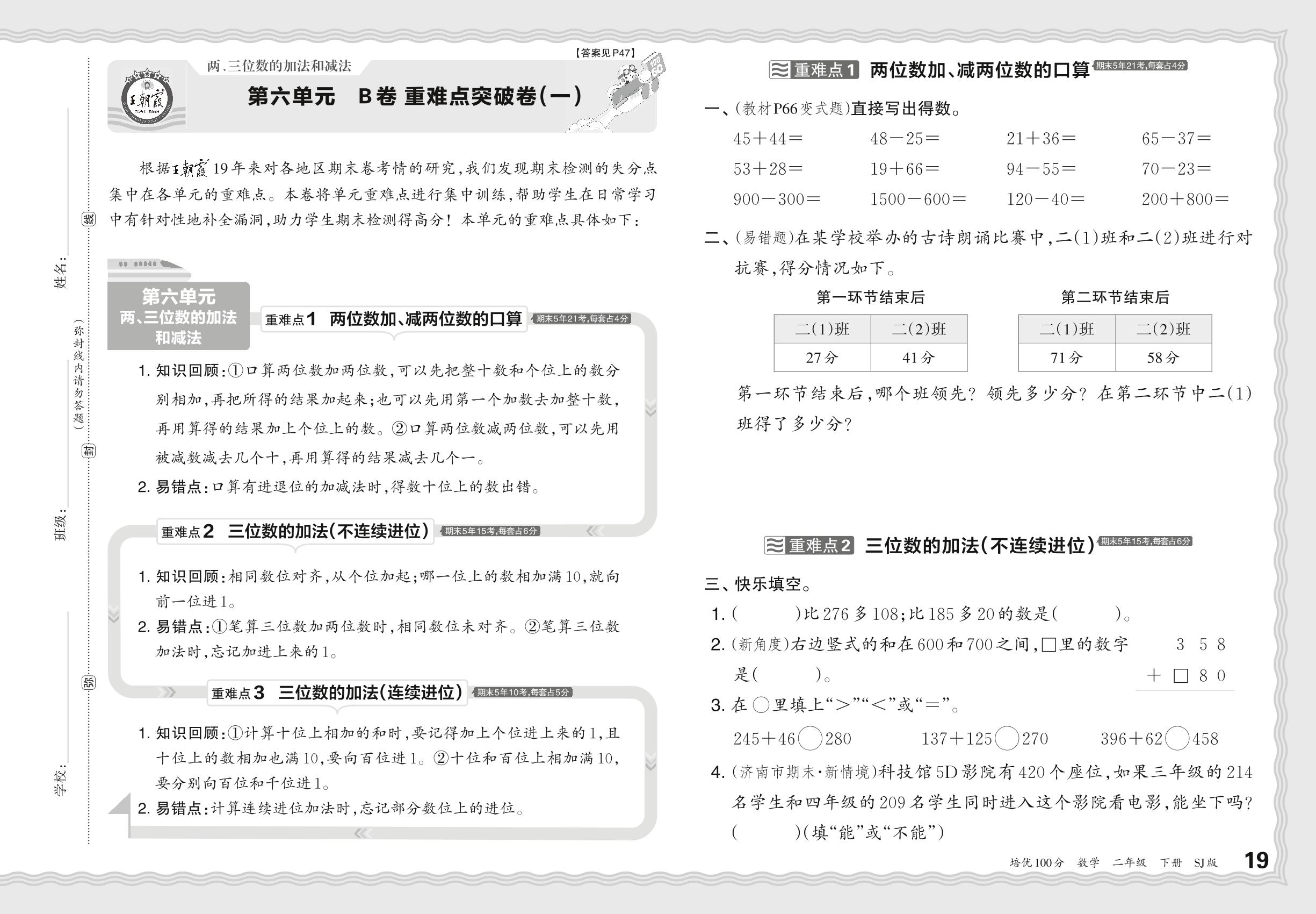 2024春下册二年级数学苏教版 第六单元 B卷 重难点突破卷(一)