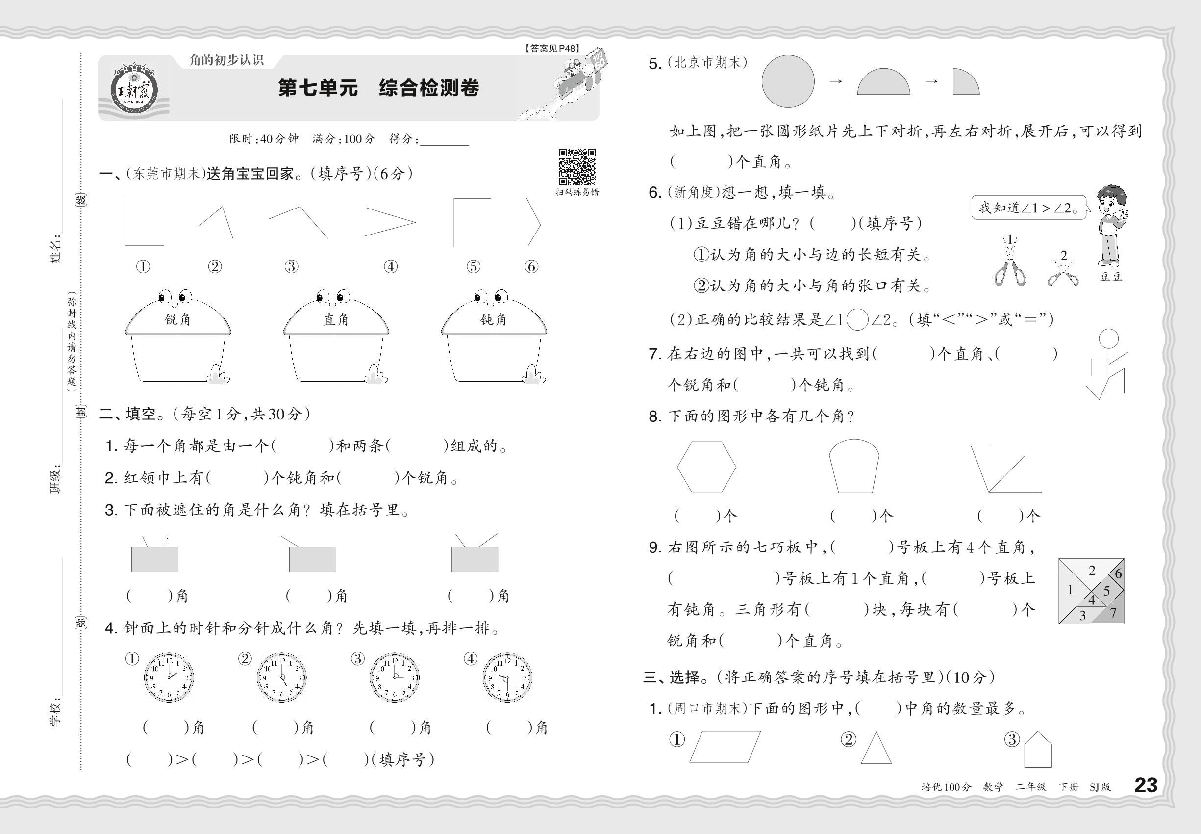 2024春下册二年级数学苏教版 第七单元 综合检测卷