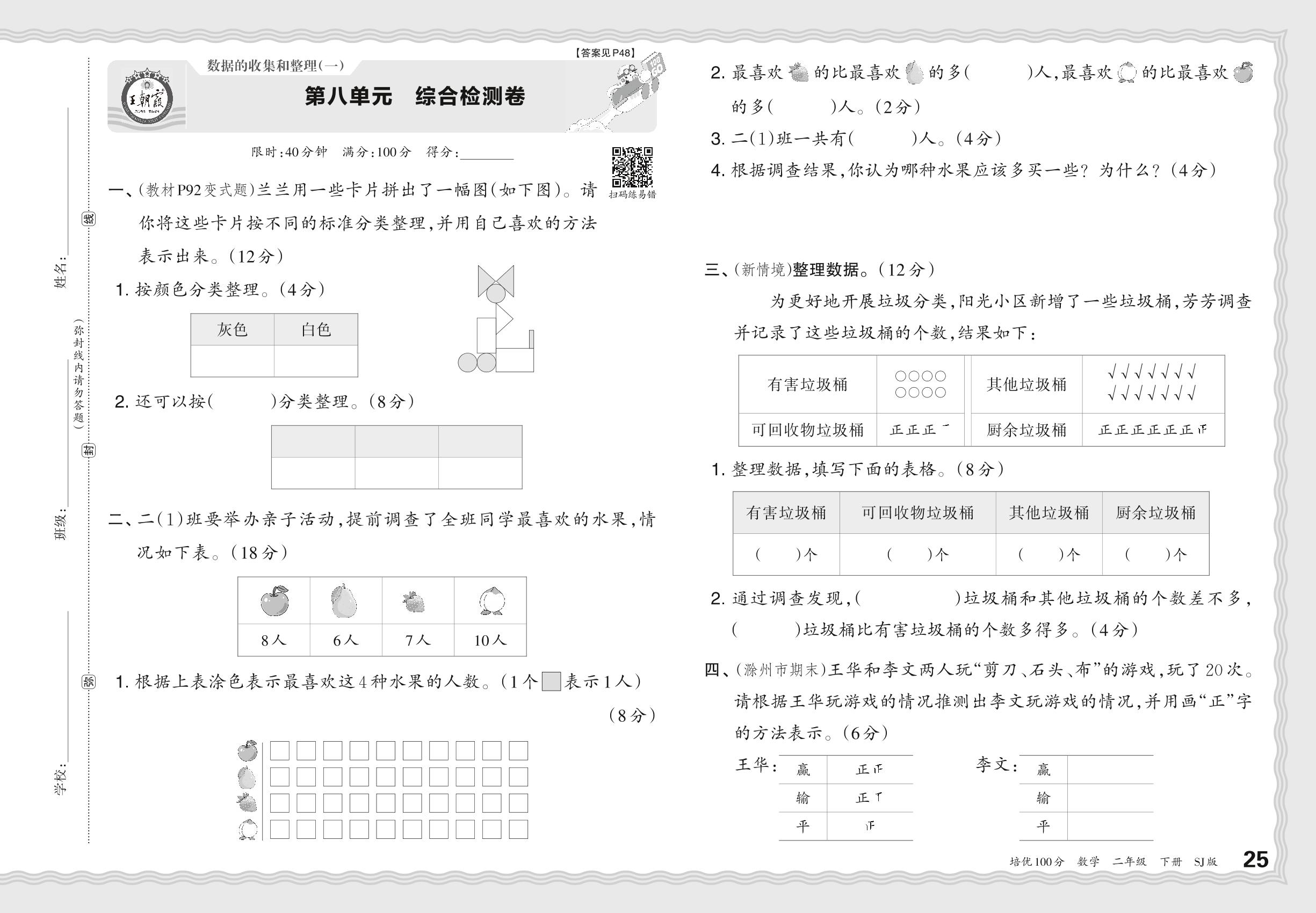 2024春下册二年级数学苏教版 第八单元 综合检测卷