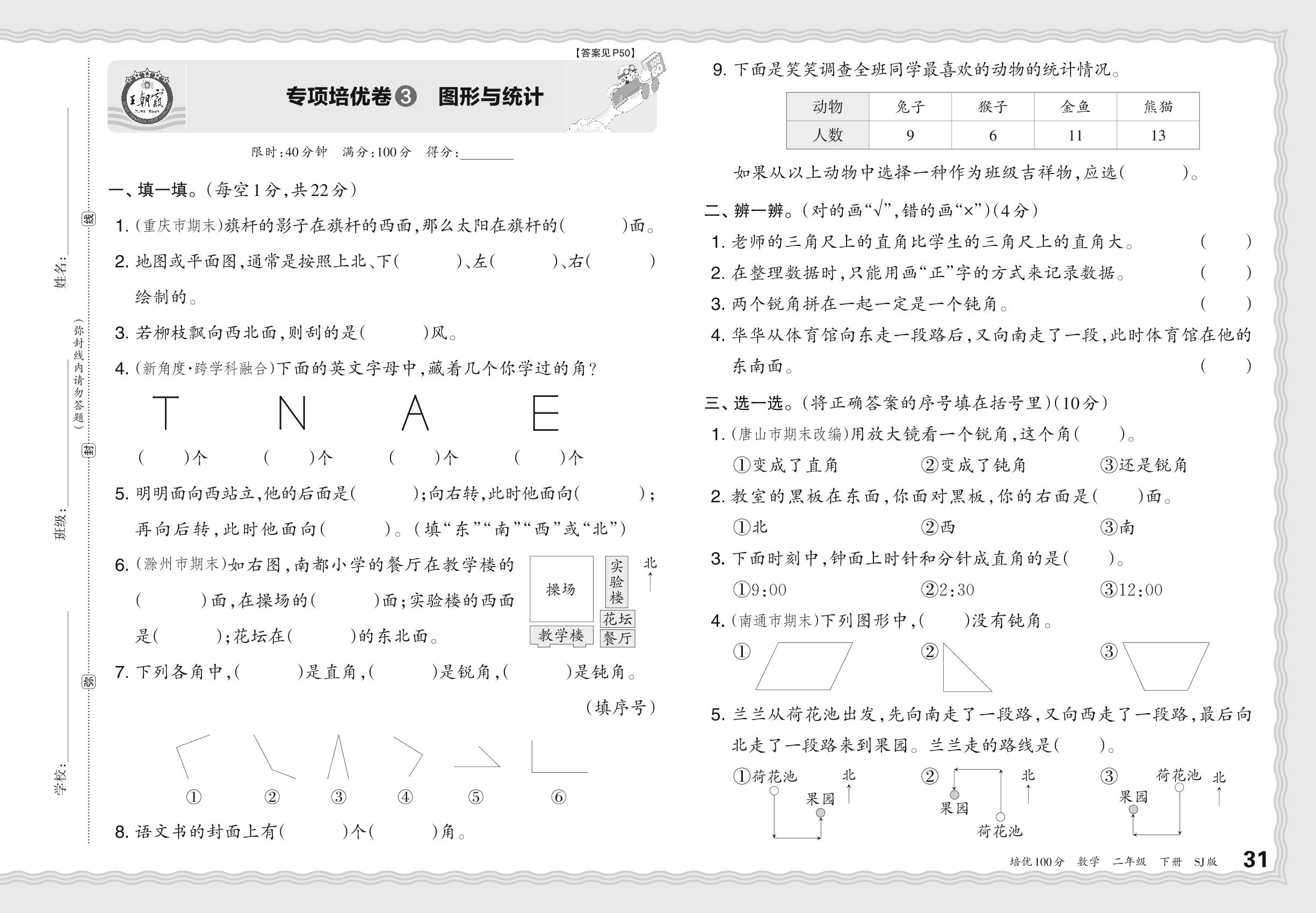 2024春下册二年级数学苏教版 期末专项卷PY版·图形与统计【3】
