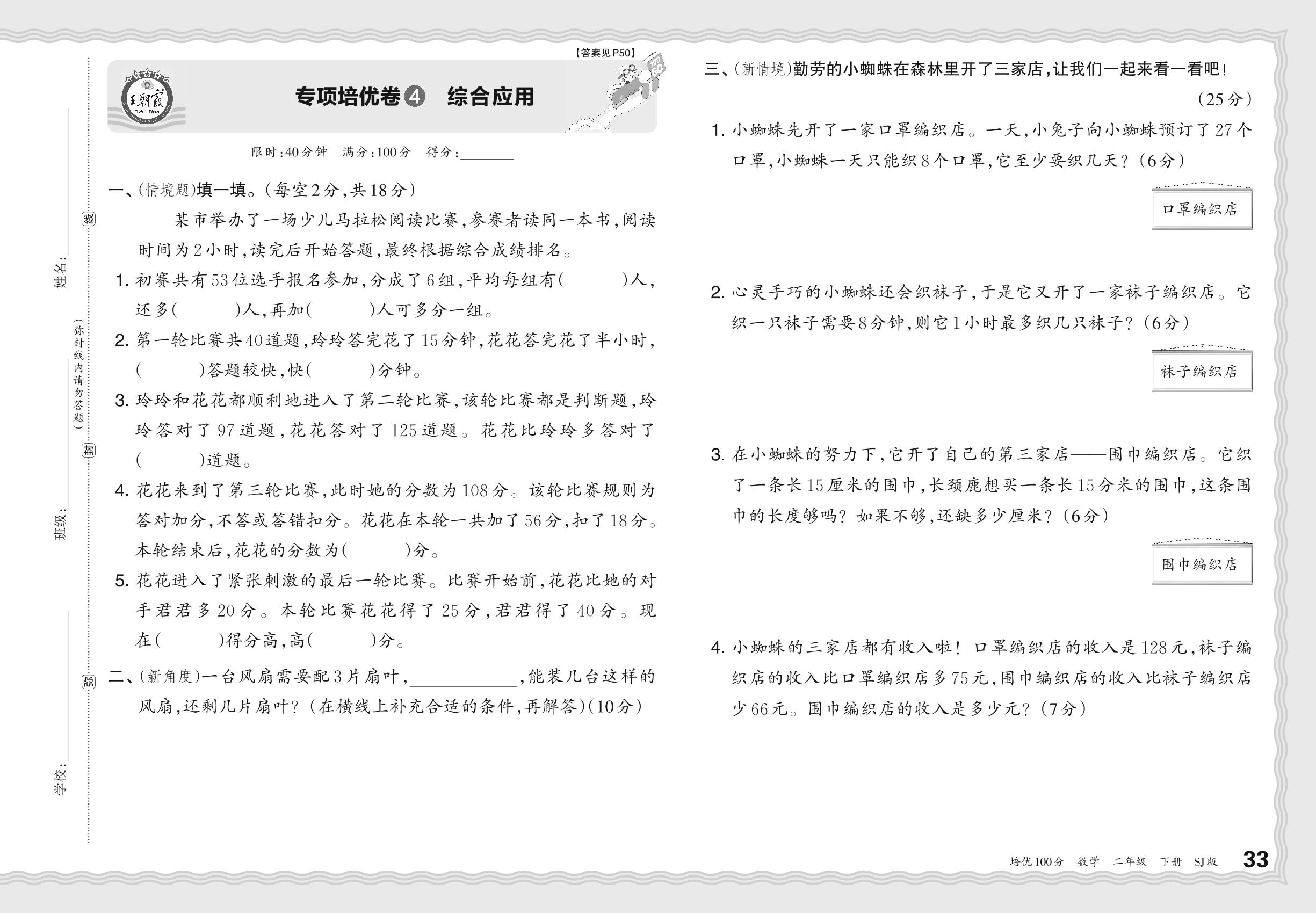2024春下册二年级数学苏教版 期末专项卷PY版·综合应用【4】