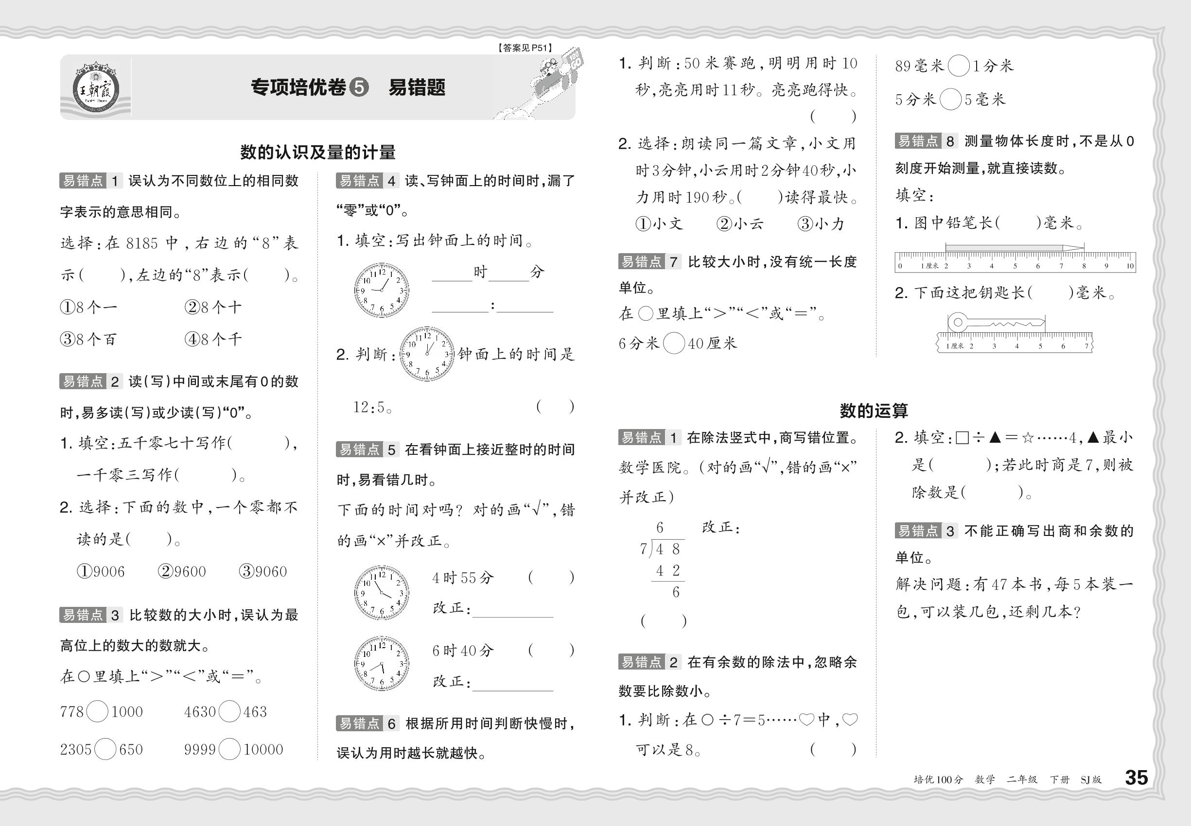 2024春下册二年级数学苏教版 期末专项卷PY版·易错题【5】
