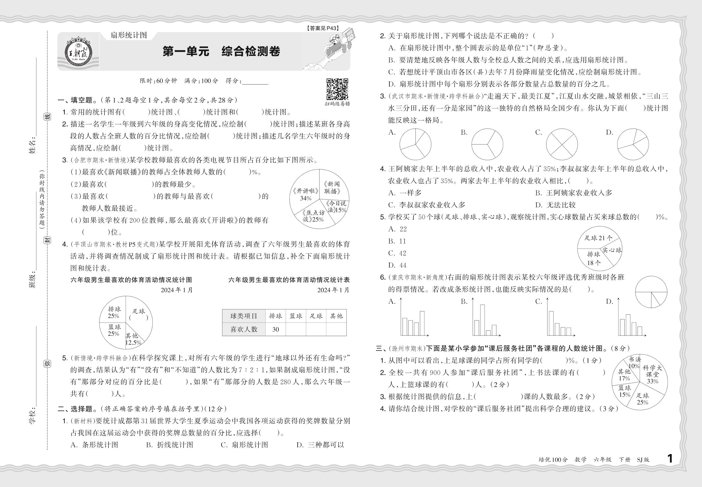 2024春下册六年级数学苏教版 第一单元 综合检测卷