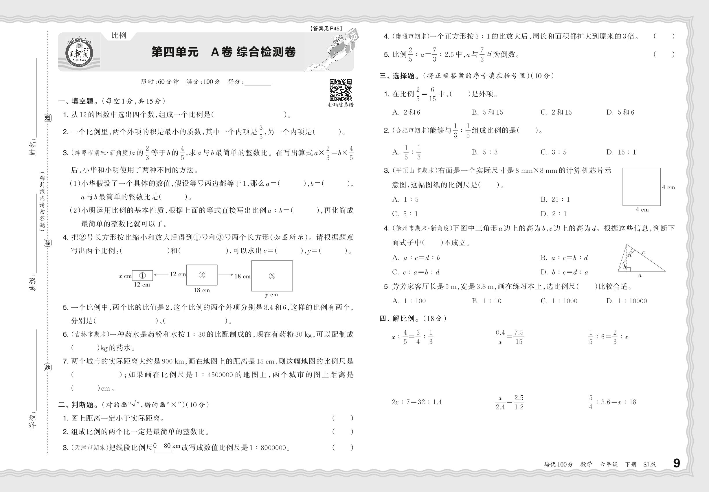 2024春下册六年级数学苏教版 第四单元 A卷 综合检测卷