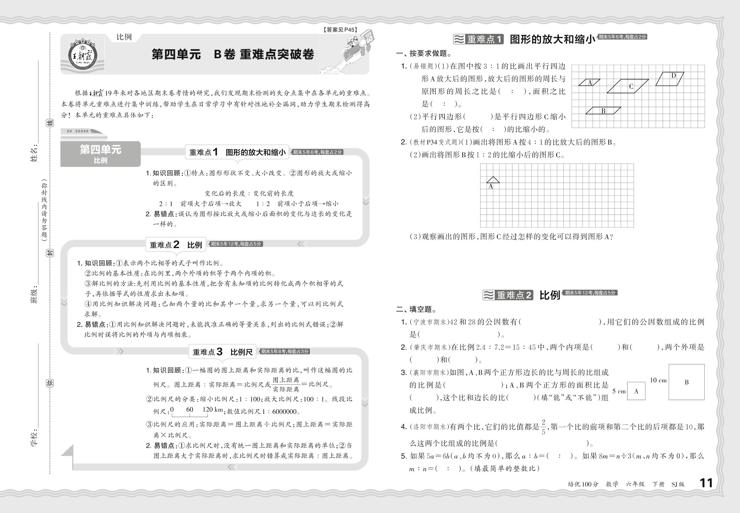 2024春下册六年级数学苏教版 第四单元 B卷 重难点突破卷