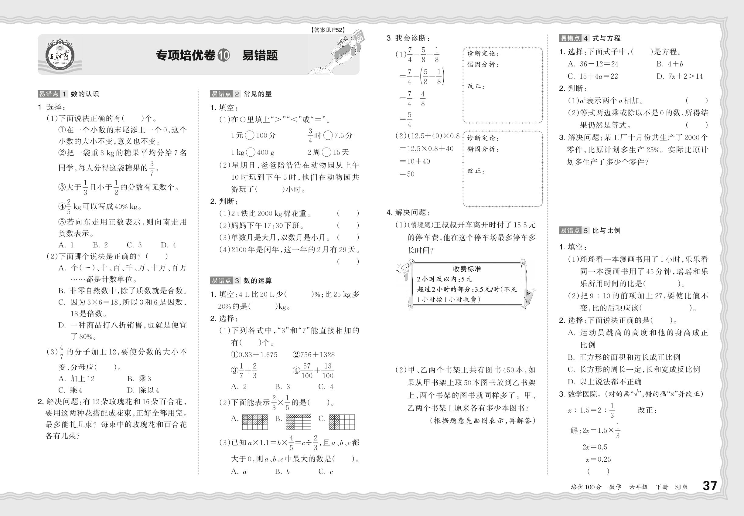 2024春下册六年级数学苏教版 期末专项卷PY版·易错题【10】