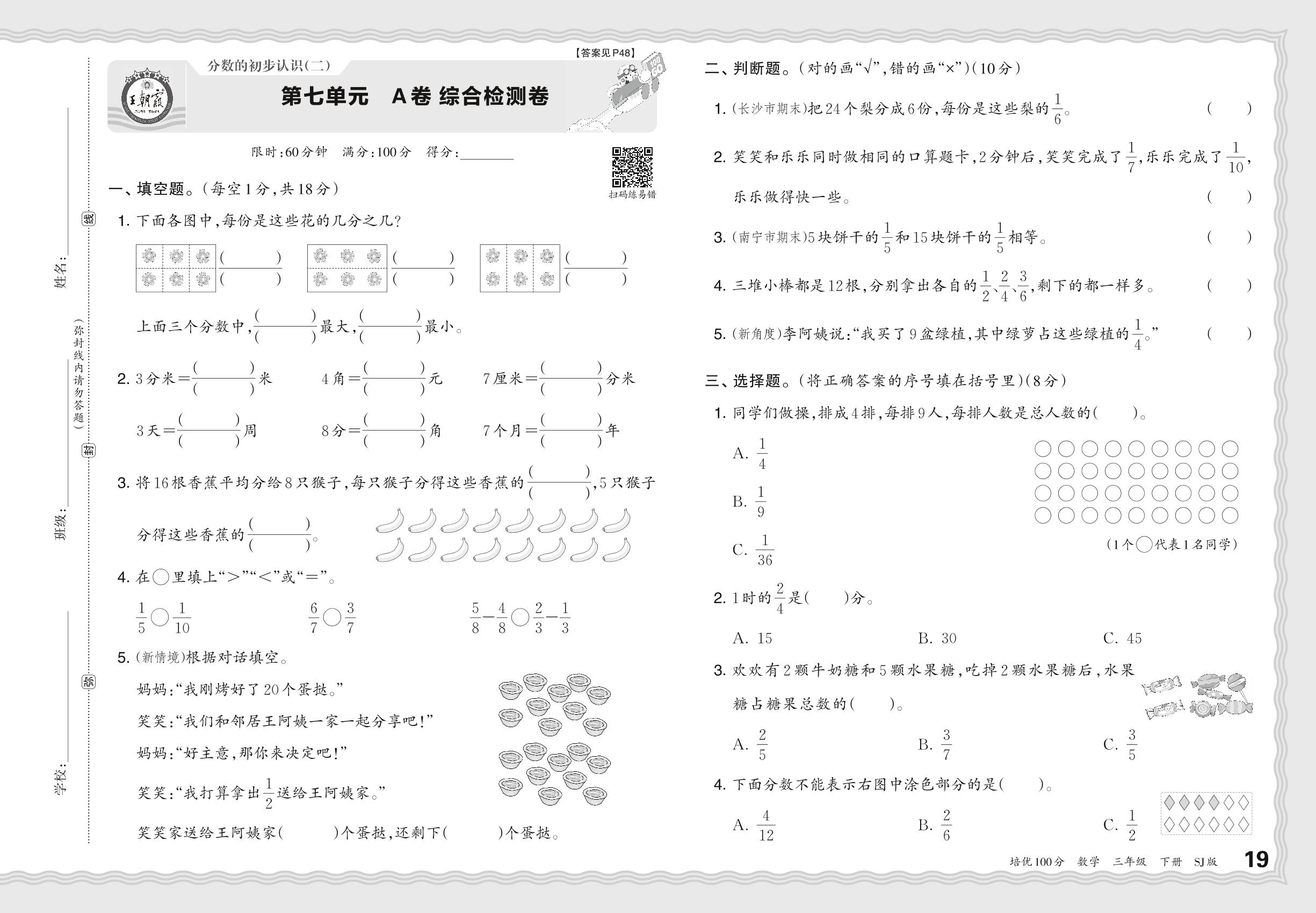 2024春下册三年级数学苏教版 第七单元 A卷 综合检测卷