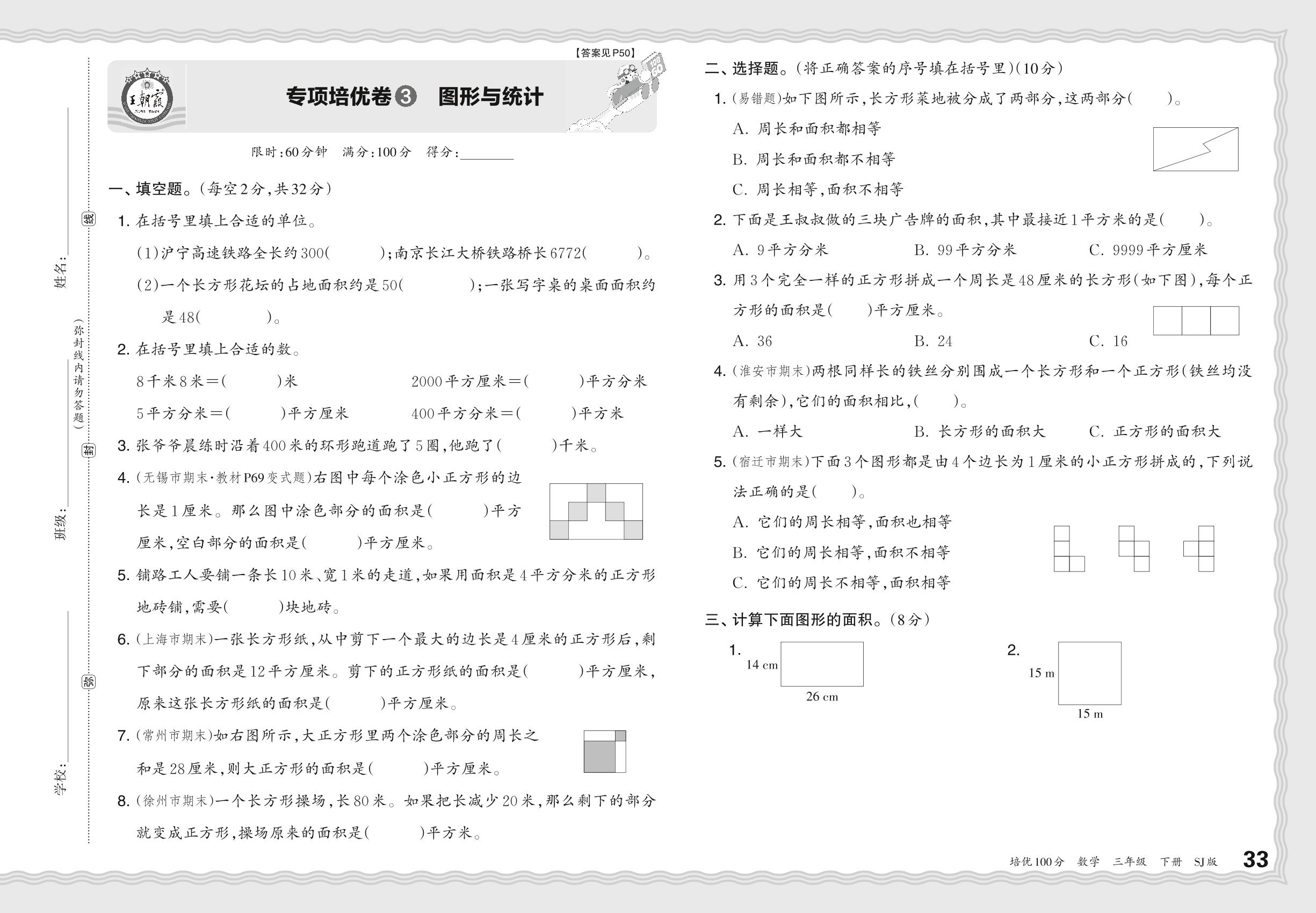 2024春下册三年级数学苏教版 期末专项卷PY版·图形的统计【3】