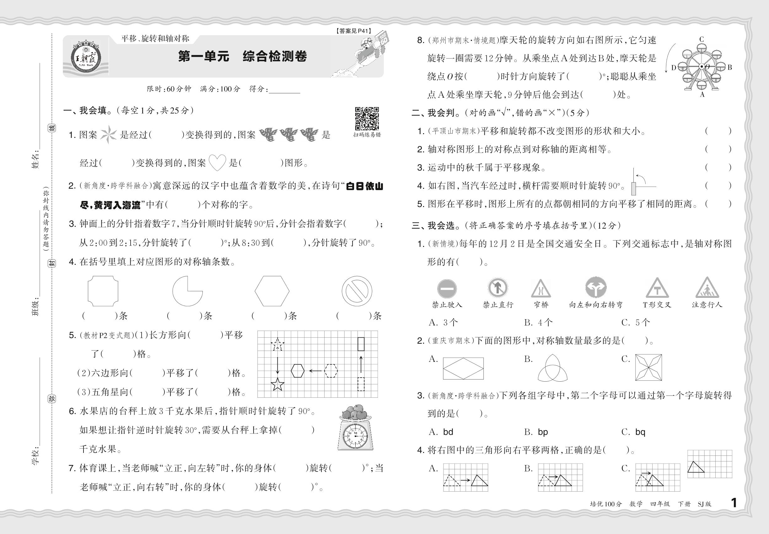 四年级数学苏教版下册单元卷