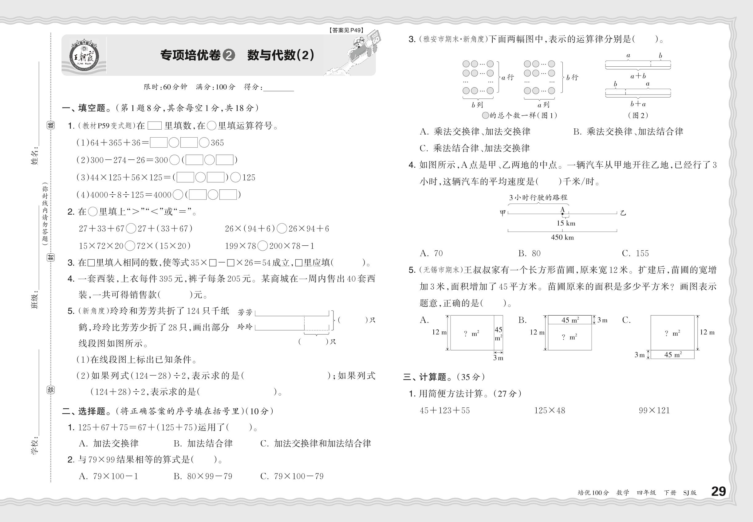 2024春下册四年级数学苏教版 期末专项卷PY版·数与代数(2)【2】