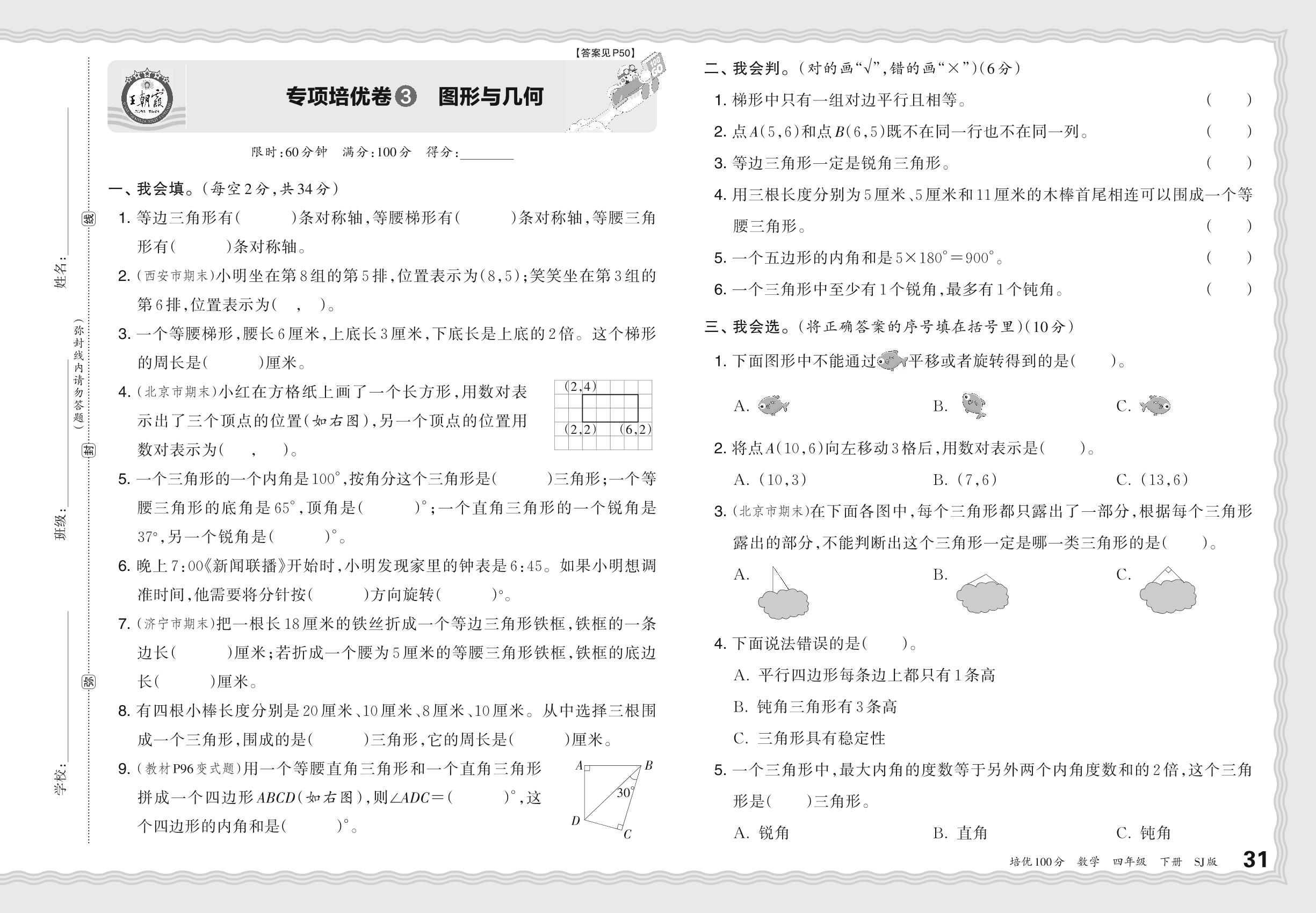2024春下册四年级数学苏教版 期末专项卷PY版·图形与几何【3】