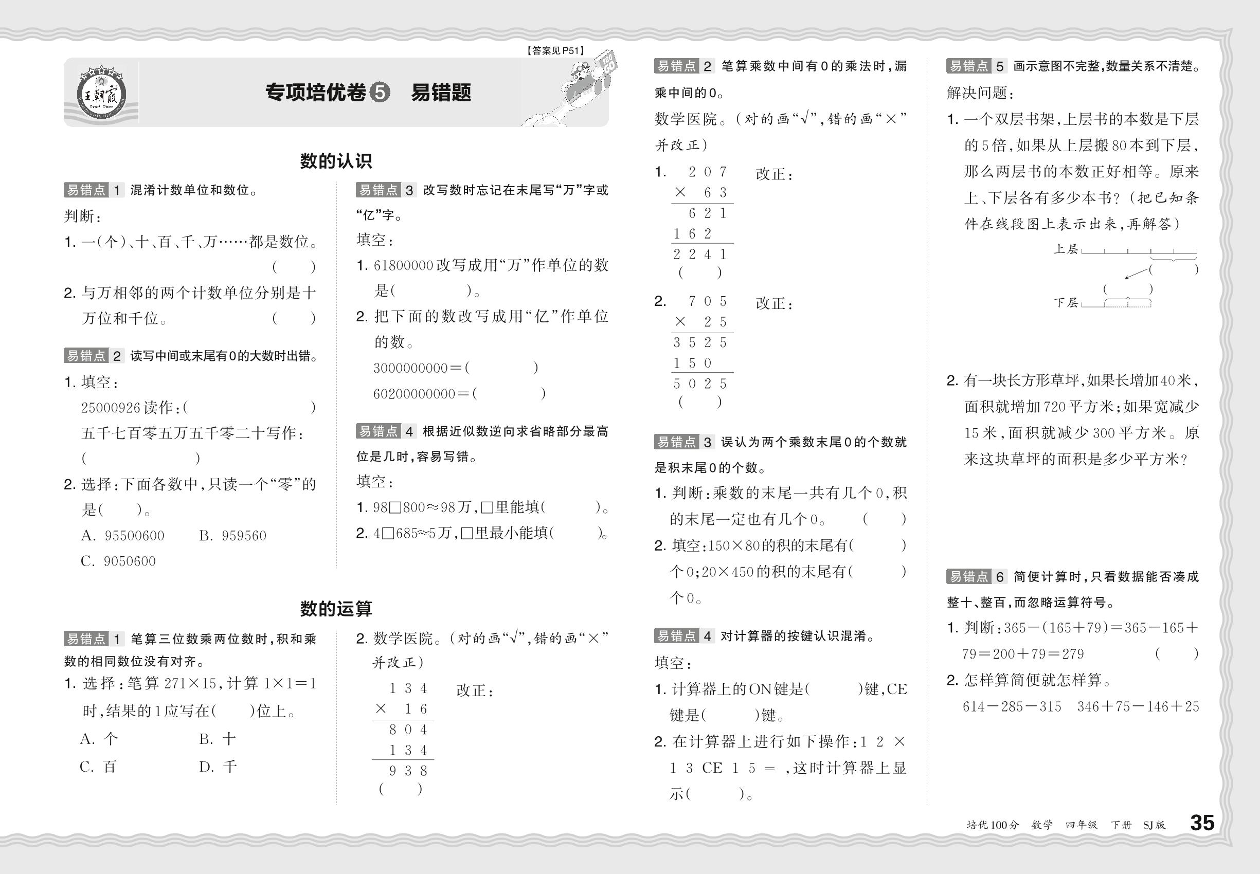 2024春下册四年级数学苏教版 期末专项卷PY版·易错题【5】