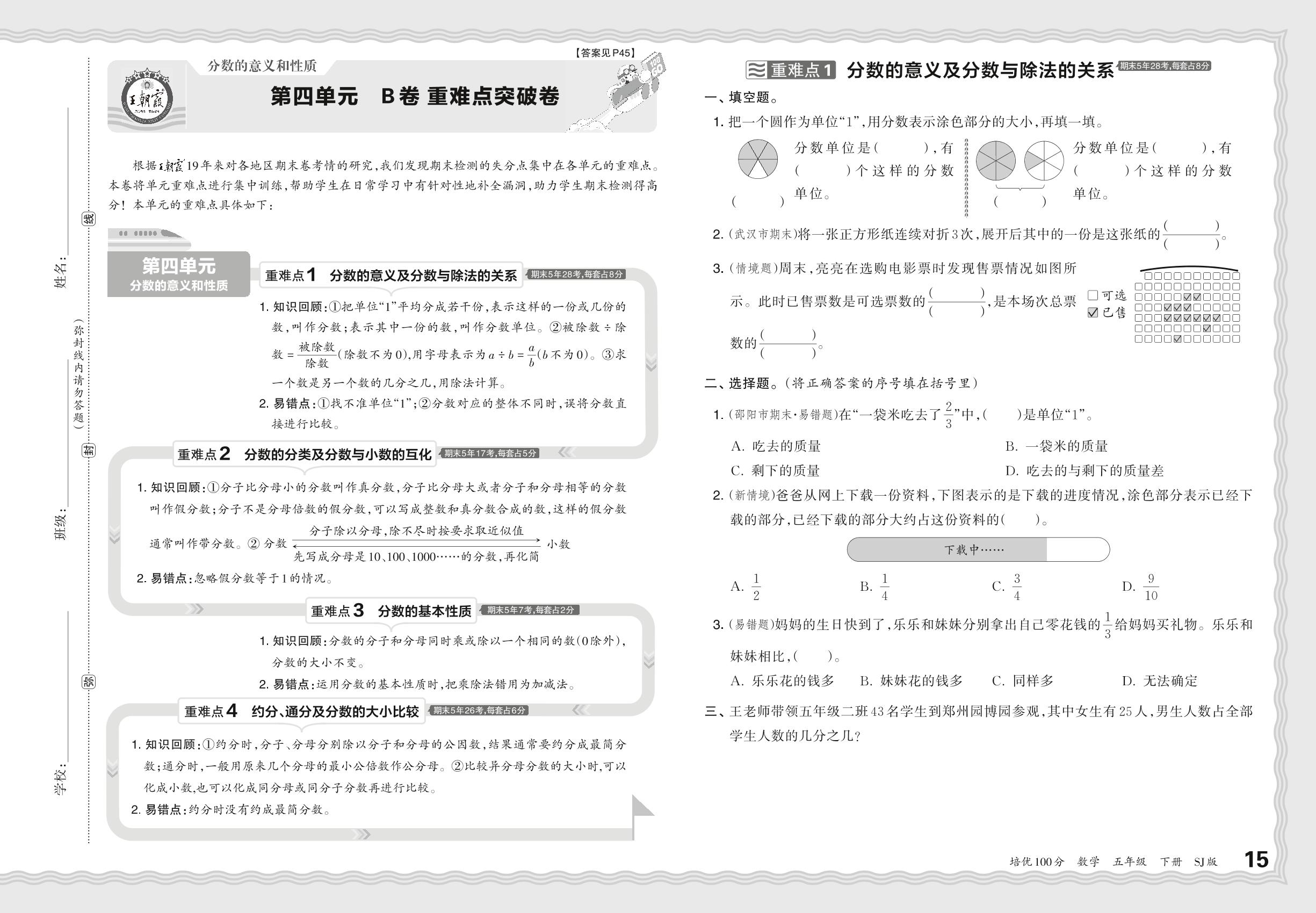 2024春下册五年级数学苏教版 第四单元 B卷 重难点突破卷