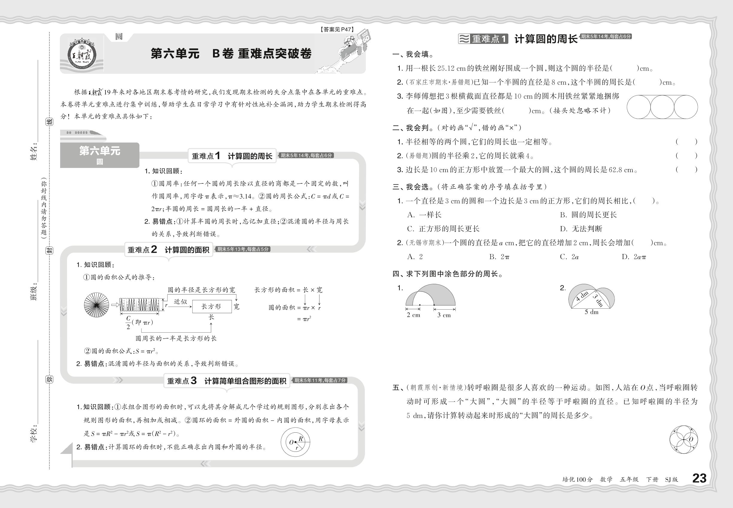 2024春下册五年级数学苏教版 第六单元 B卷 重难点突破卷