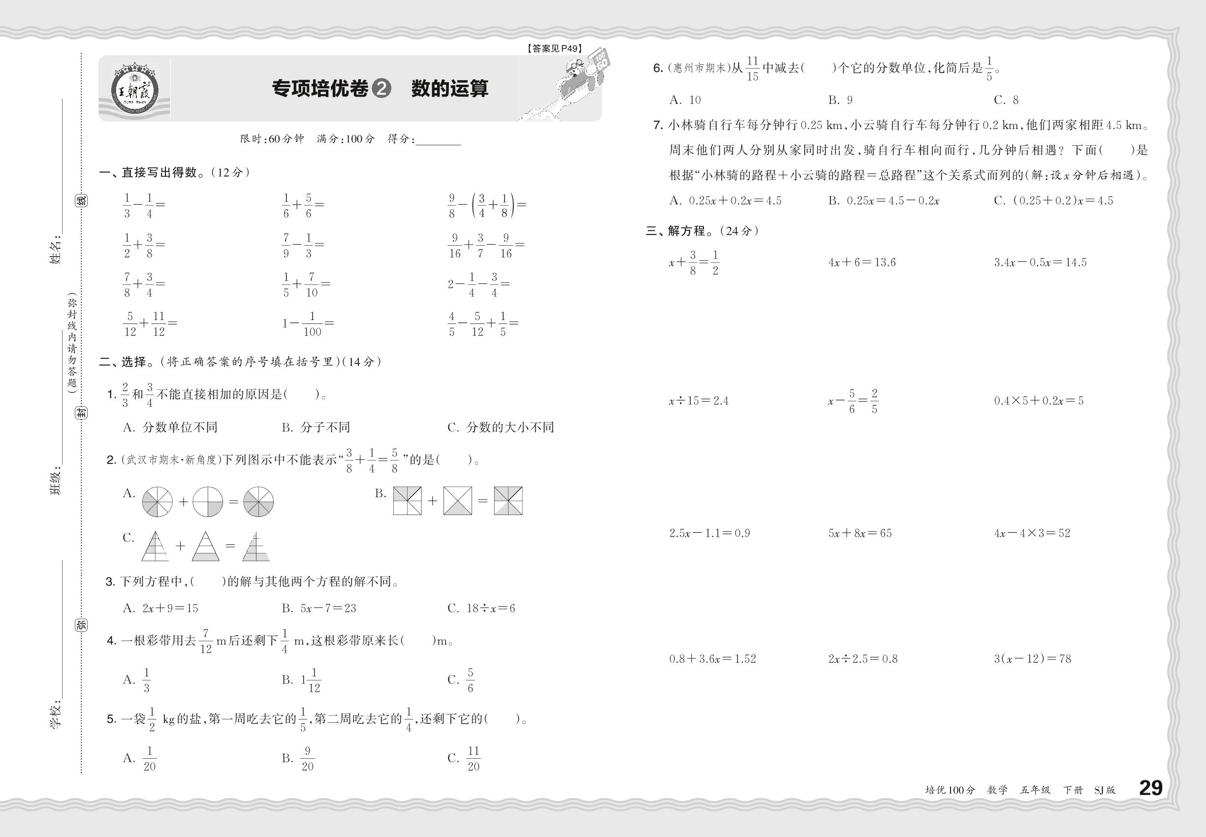 2024春下册五年级数学苏教版 期末专项卷PY版·数的运算【2】
