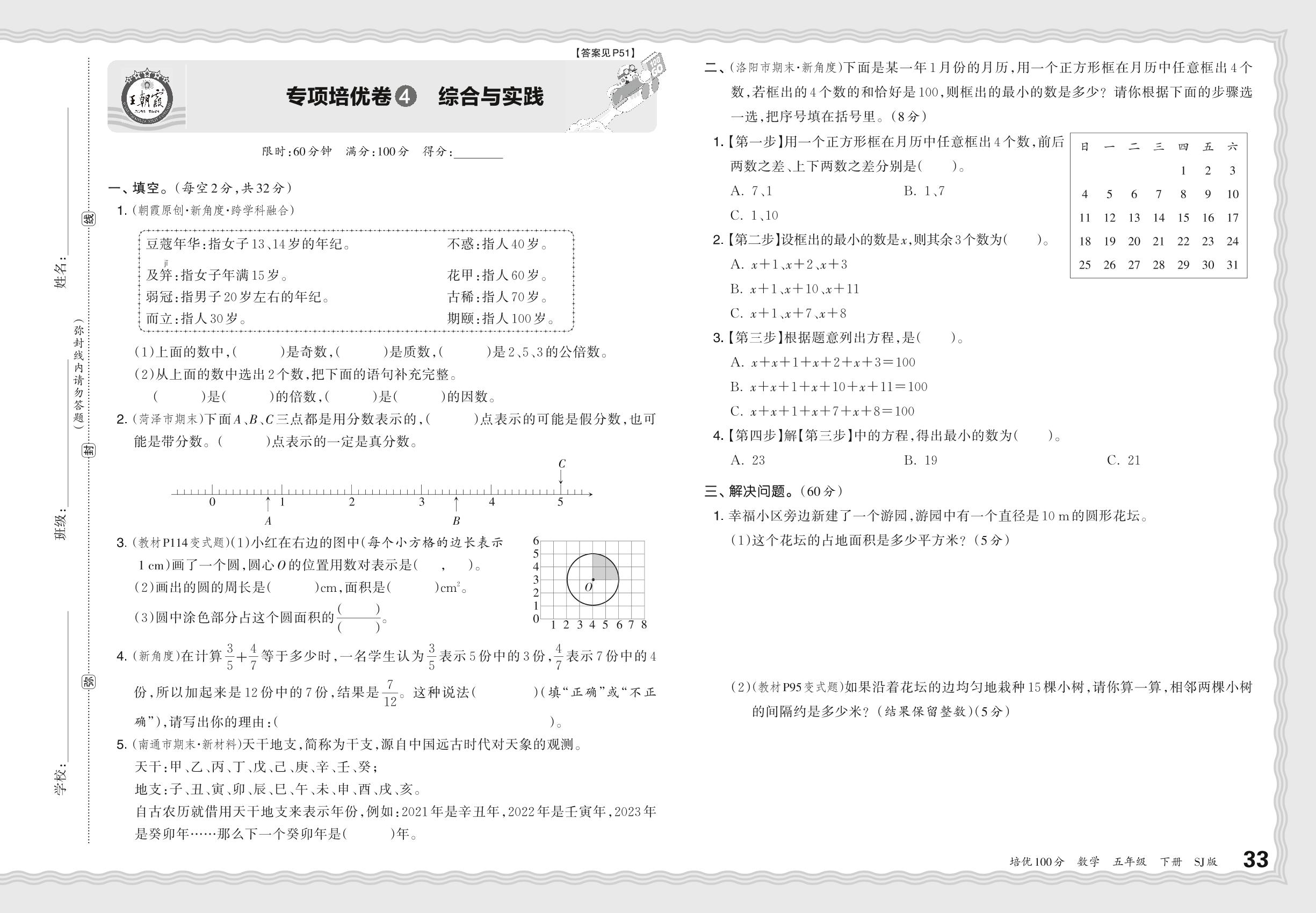 2024春下册五年级数学苏教版 期末专项卷PY版·综合与实践【4】