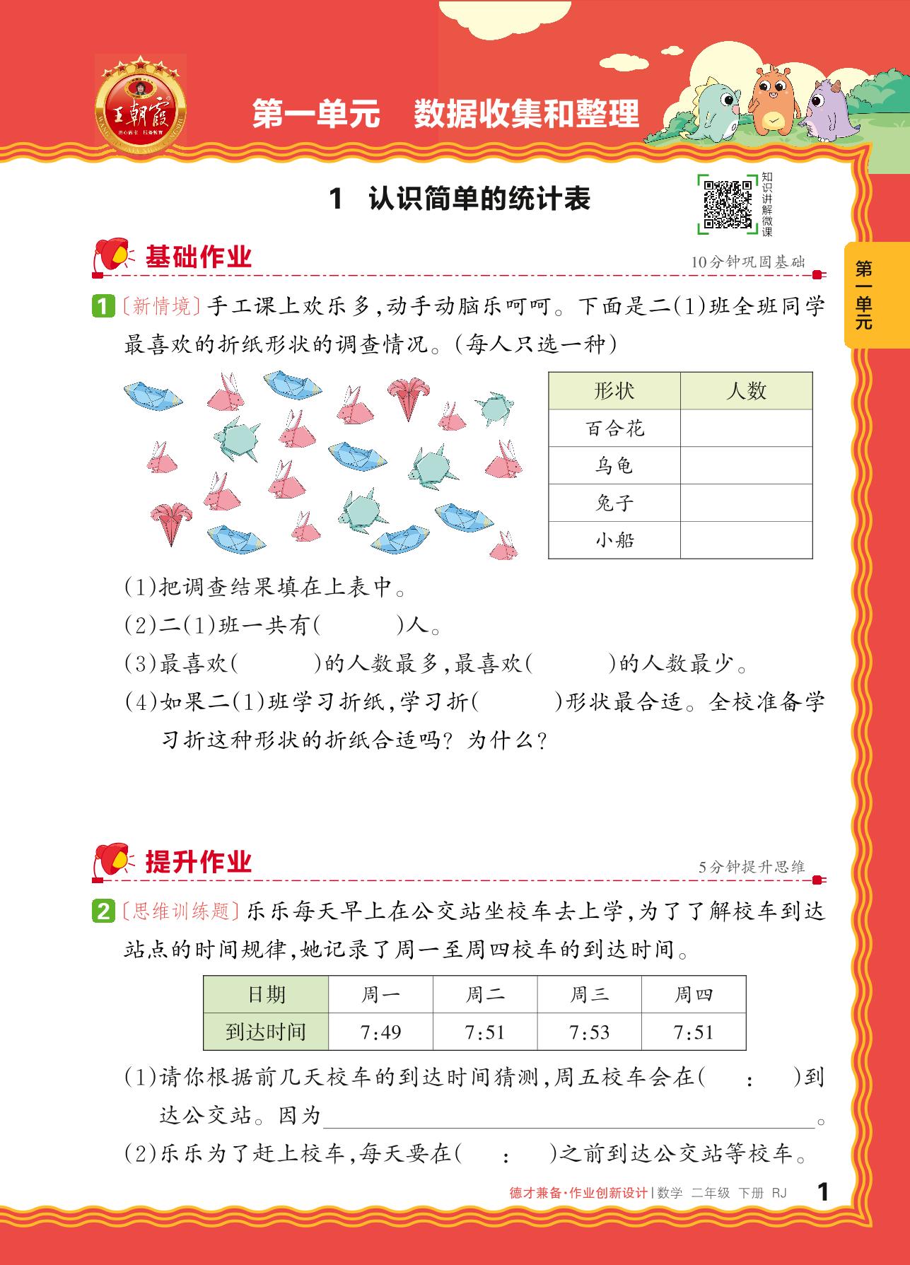 2024春下册二年级数学人教版 第一单元 数据收集和整理——1. 认识简单的统计表
