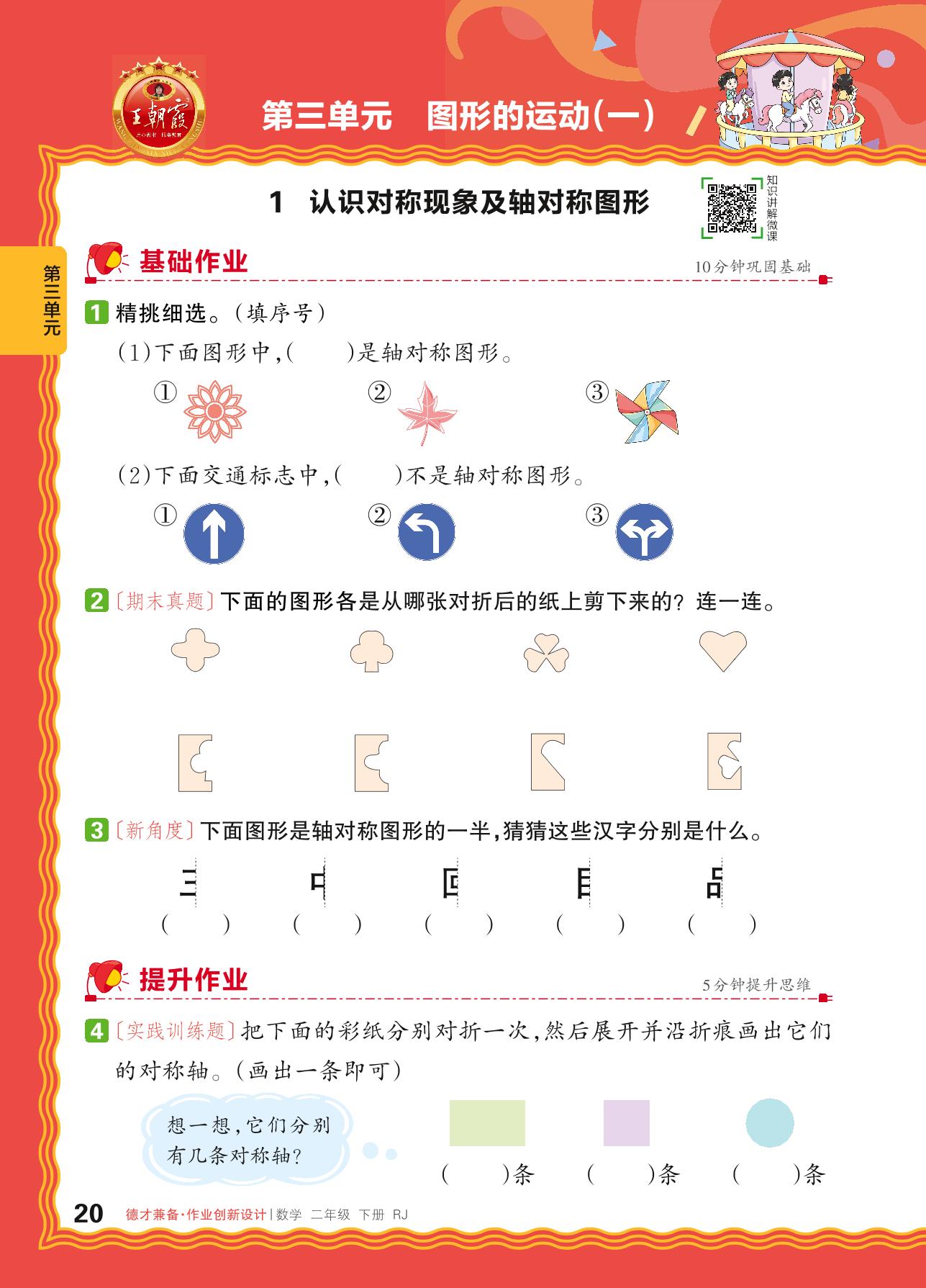 2024春下册二年级数学人教版 第三单元 图形的运动(一)——1. 认识对称现象及轴对称图形