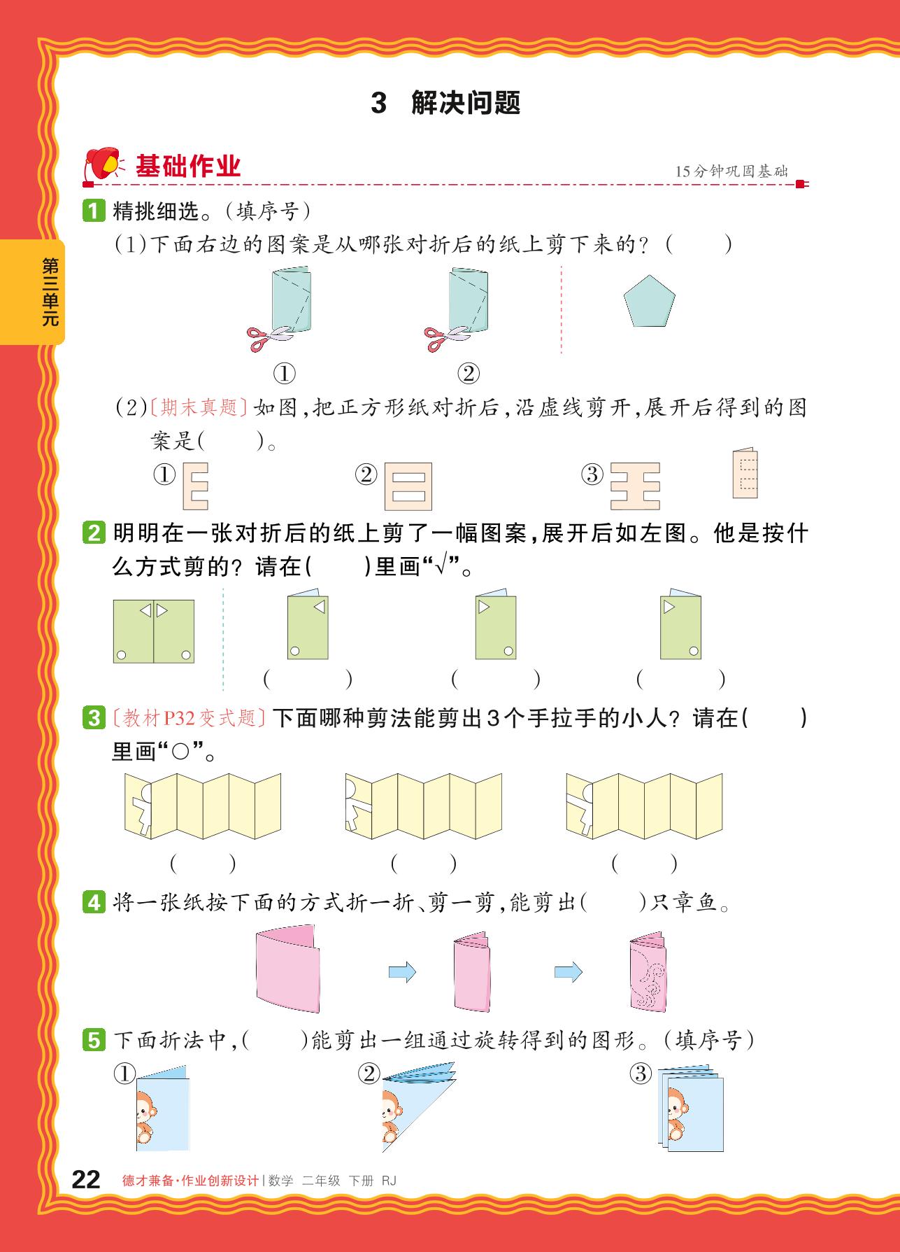 2024春下册二年级数学人教版 第三单元 图形的运动(一)——3. 解决问题